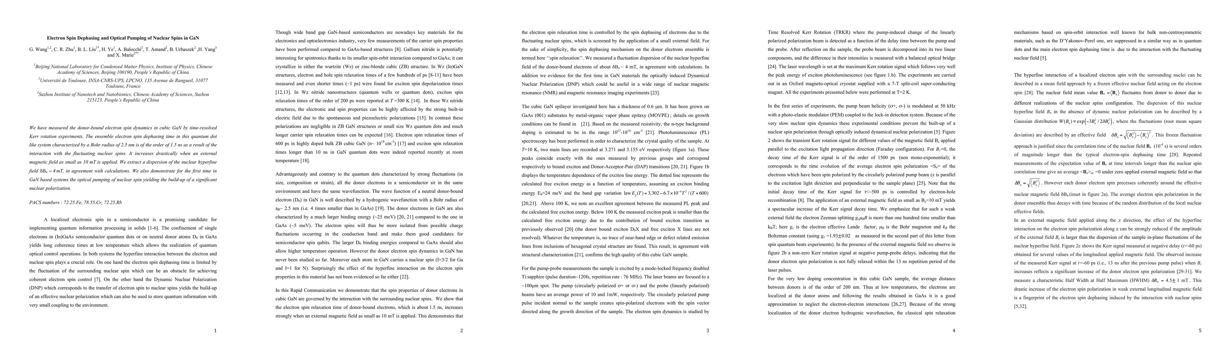 Researchers measured electron spin dynamics in GaN and found that applying a small external magnetic field drastically increases dephasing time, demonstrating optical pumping of nuclear spins for the first time in this material.