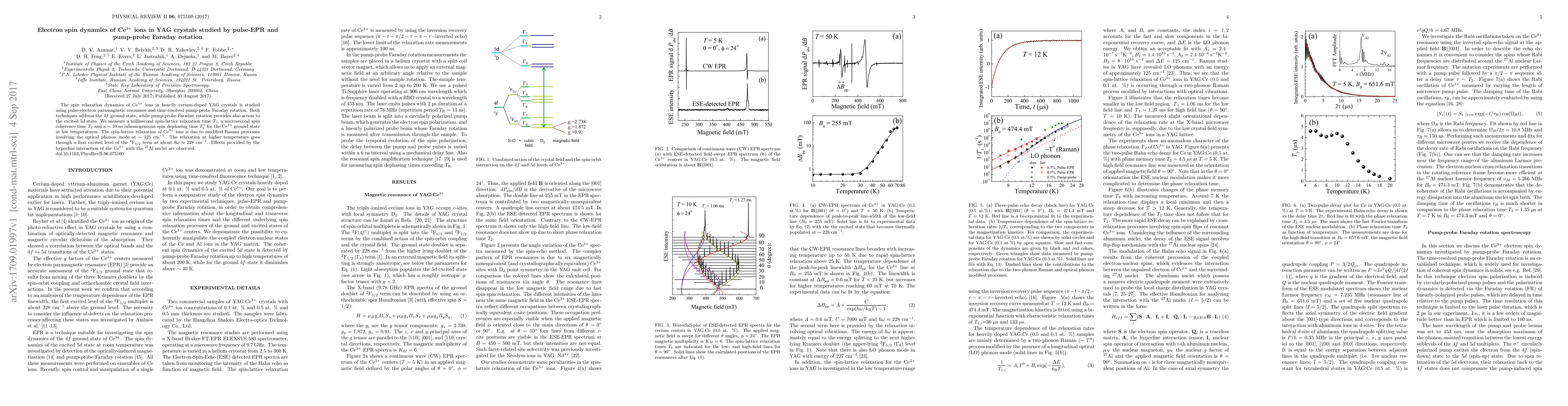 This paper investigates the spin dynamics of Ce$^{3+}$ ions in cerium-doped YAG crystals using pulse-EPR and pump-probe Faraday rotation. It reports millisecond spin-lattice relaxation times, microsecond spin coherence times, and nanosecond inhomogeneous dephasing times, attributing relaxation to Raman processes and hyperfine interactions with $^{27}$Al nuclei.