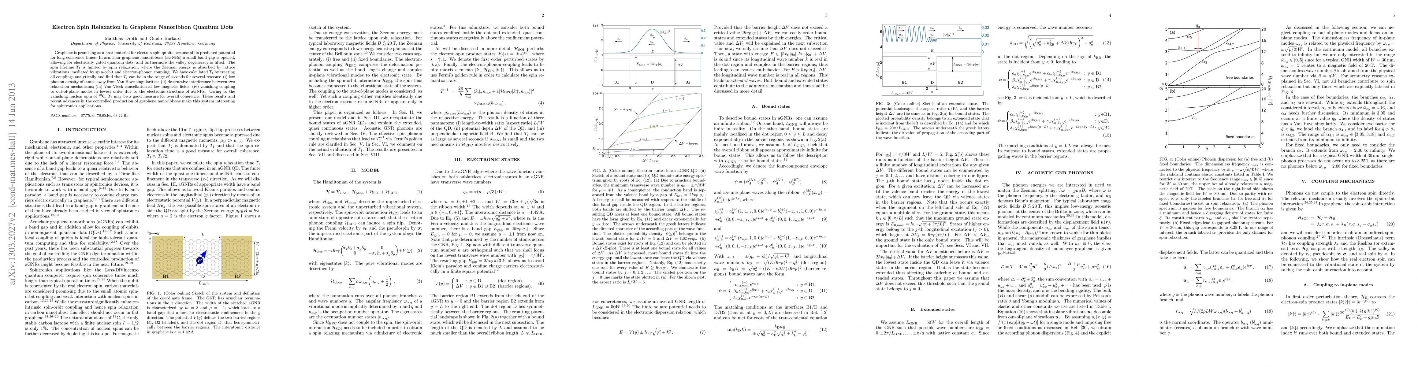 This study investigates electron spin relaxation in armchair graphene nanoribbon quantum dots, finding long spin lifetimes (seconds) due to factors such as low phonon density and destructive interference between relaxation mechanisms, indicating potential for spintronics applications.