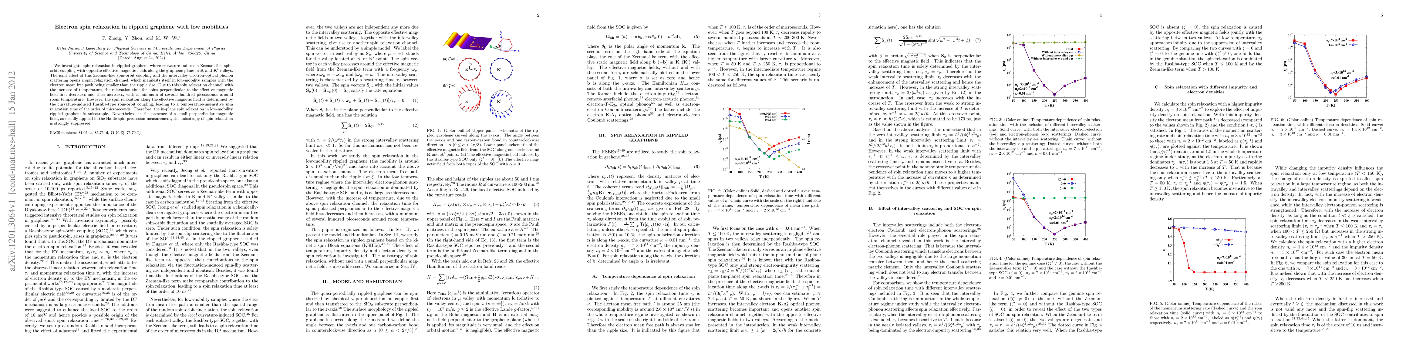 This study explores electron spin relaxation in rippled graphene, showing that curvature-induced Zeeman-like spin-orbit coupling and intervalley electron-optical phonon scattering create anisotropic spin relaxation. Temperature affects the relaxation time differently in-plane and along the effective magnetic field, with significant suppression of anisotropy under a small perpendicular magnetic field.