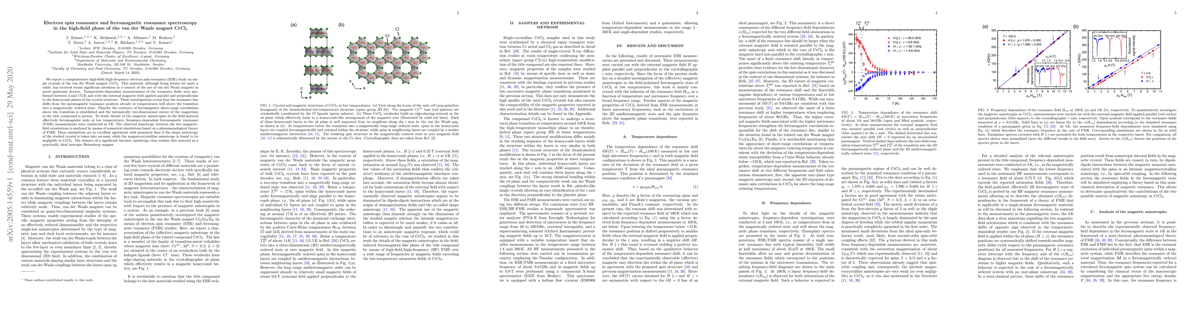 This study investigates the high-field/high-frequency electron spin resonance (ESR) in CrCl$_3$, revealing ferromagnetic short-range correlations above the magnetic transition and confirming the two-dimensional magnetism. Frequency-dependent ferromagnetic resonance at 4 K shows negligible magnetocrystalline anisotropy, indicating CrCl$_3$ behaves as an ideal isotropic Heisenberg magnet.