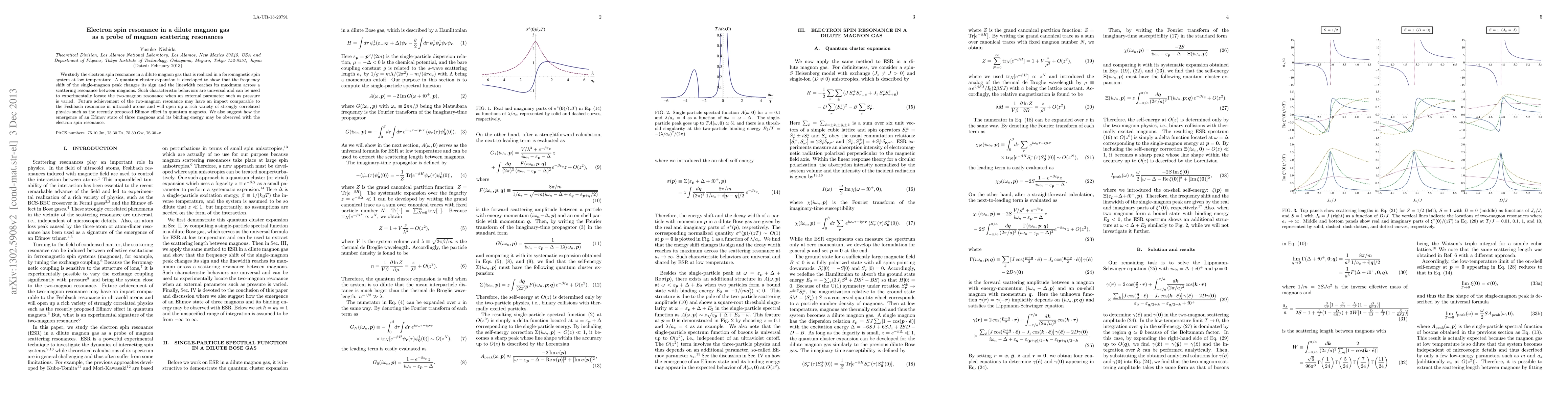 Researchers studied electron spin resonance in a dilute magnon gas to probe magnon scattering resonances, discovering characteristic behaviors that can be used to locate two-magnon resonance and potentially unlock rich physics like the Efimov effect.