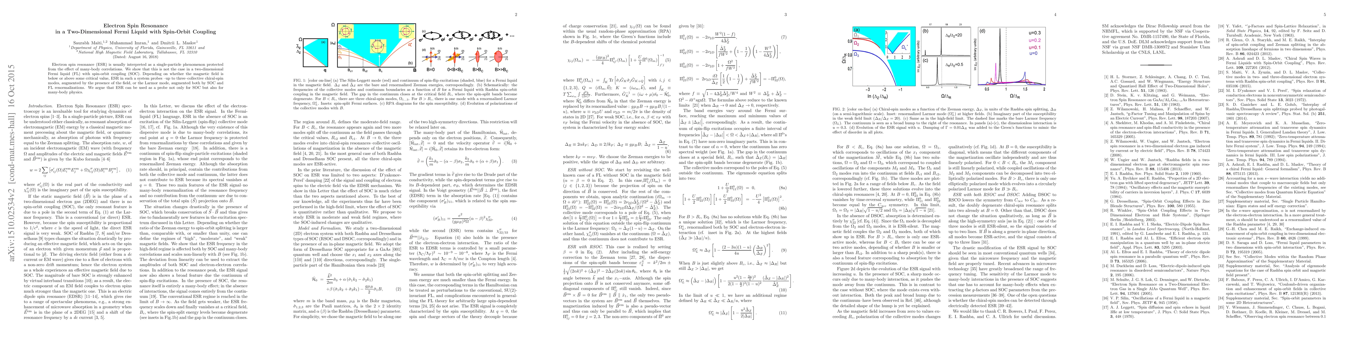 This paper demonstrates that electron spin resonance in a two-dimensional Fermi liquid with spin-orbit coupling can reveal collective chiral-spin modes, challenging the notion that ESR is solely a single-particle phenomenon. It suggests ESR as a tool to study both spin-orbit coupling and many-body effects in the system.