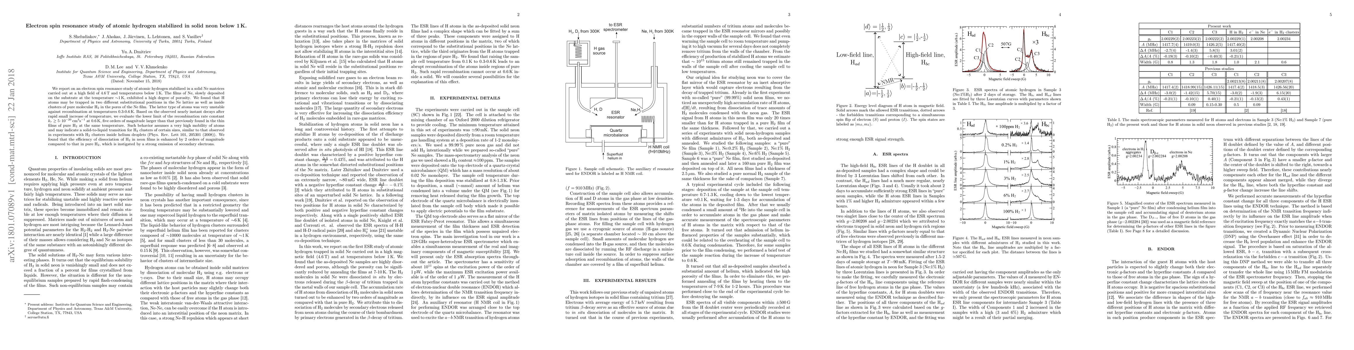 Researchers studied atomic hydrogen in solid neon matrices at low temperatures, finding that H atoms can exist in different positions within the lattice or inside molecular H2 clusters, which have a high recombination rate, suggesting a possible solid-to-liquid transition for H2 clusters.