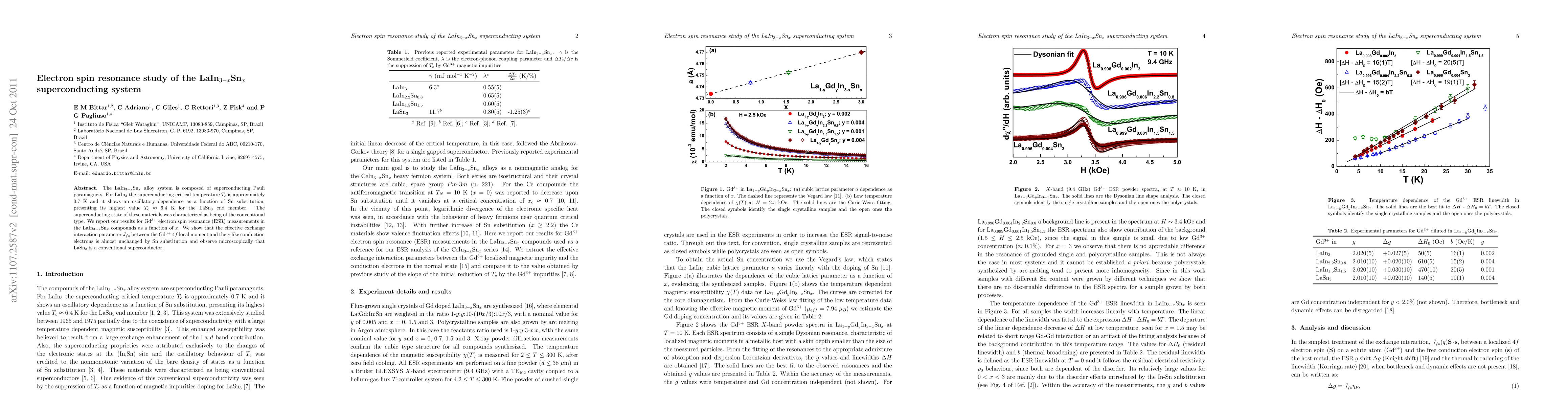 This study investigates the LaIn3-xSnx superconducting system using electron spin resonance (ESR) on Gd3+ ions, revealing a conventional superconducting state with an unchanged effective exchange interaction parameter J_fs despite Sn substitution, which optimizes superconductivity at LaSn3 with T_c ~ 6.4 K.