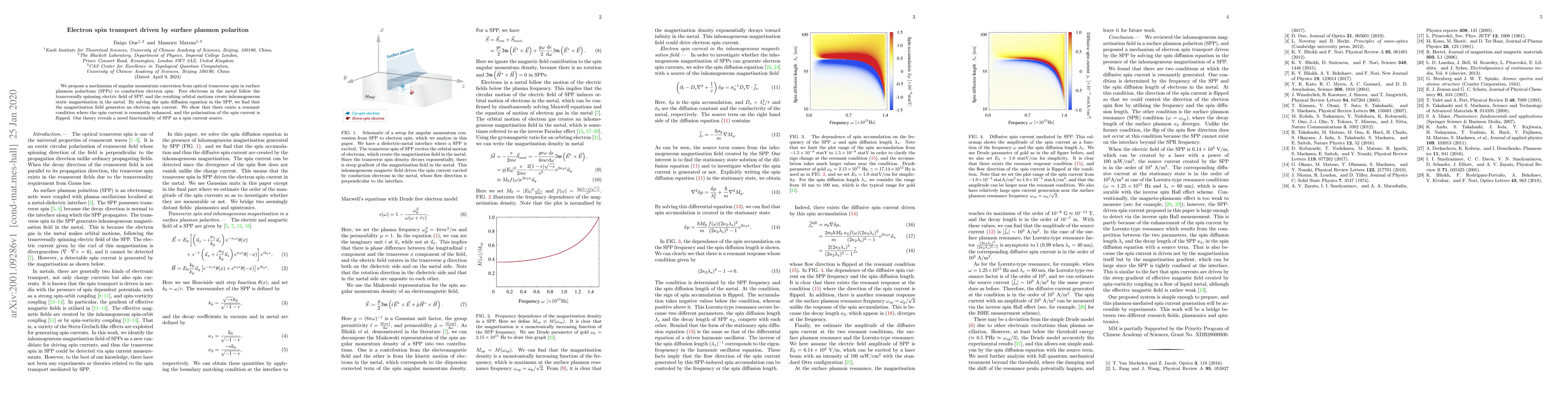 This paper proposes a mechanism for converting optical transverse spin in surface plasmon polaritons (SPPs) into conduction electron spin, demonstrating that SPPs can generate an electron spin current through inhomogeneous static magnetization in metals. The study reveals a resonant condition that enhances and flips the polarization of the spin current, showcasing SPPs as a novel spin current source.