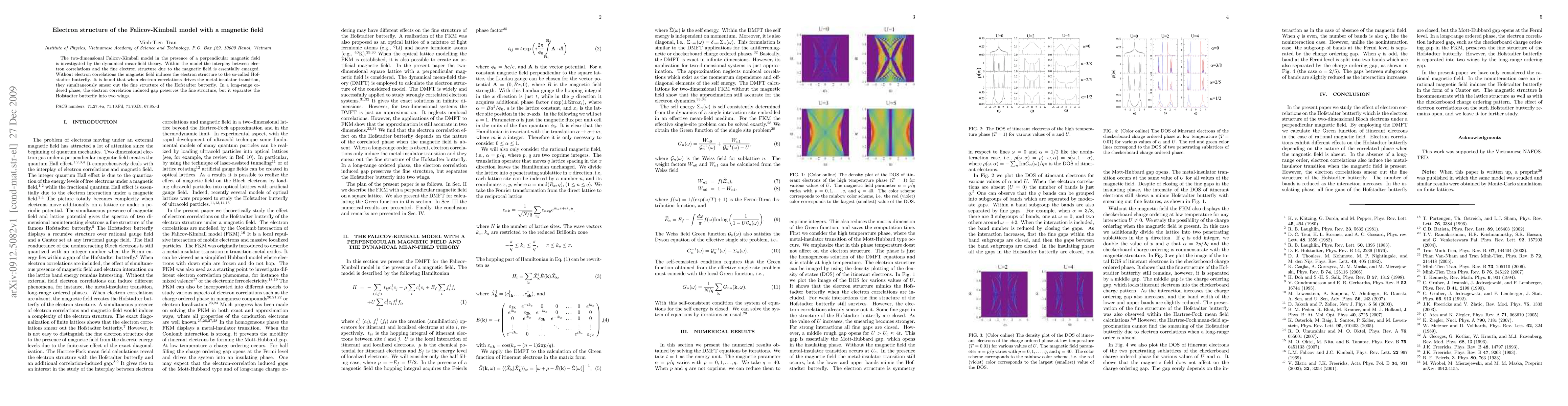The two-dimensional Falicov-Kimball model in the presence of a perpendicular magnetic field is investigated by the dynamical mean-field theory. Within the model the interplay between electron correlations and the fine electron structure due to the magnetic field is essentially emerged. Without electron correlations the magnetic field induces the electron structure to the so-called Hofstadter butterfly. It is found that when electron correlations drives the metal-insulator transition, they simultaneously smear out the fine structure of the Hofstadter butterfly. In a long-range ordered phase, the electron correlation induced gap preserves the fine structure, but it separates the Hofstadter butterfly into two wings.