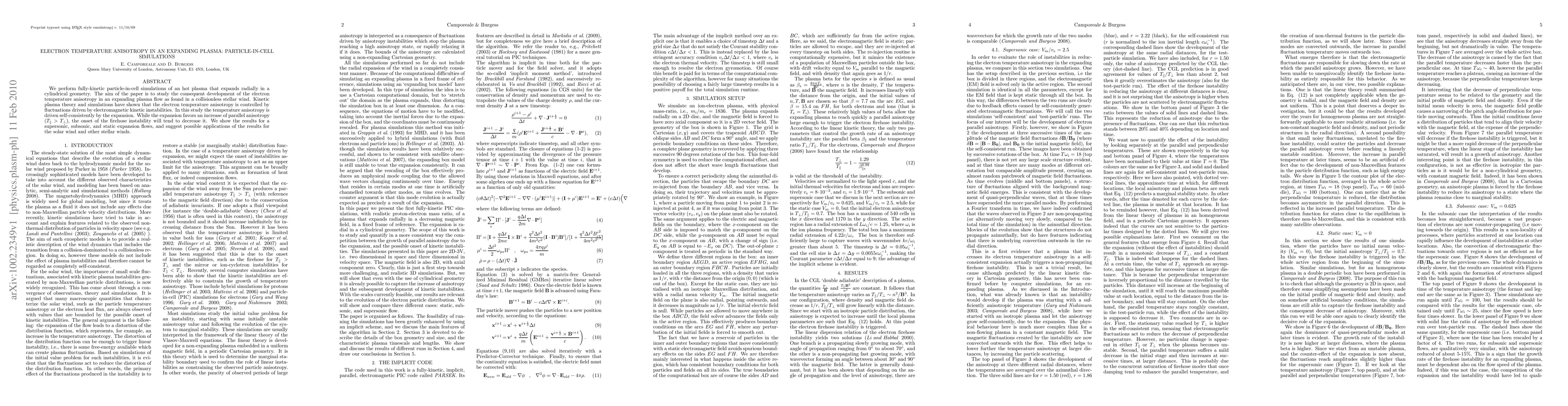 This paper uses particle-in-cell simulations to study the development of electron temperature anisotropy in radially expanding plasma, finding that while expansion increases parallel anisotropy, electromagnetic instabilities can reduce it. The results suggest implications for understanding stellar winds like the solar wind.