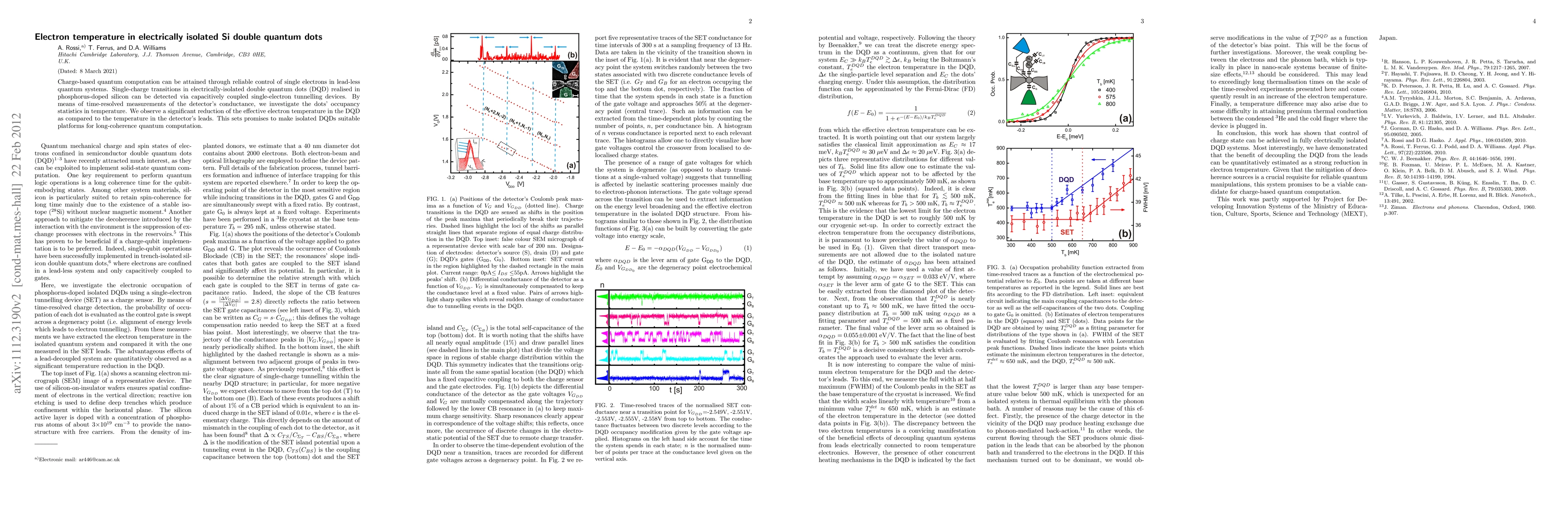 This study investigates the electron temperature in electrically isolated Si double quantum dots (DQDs) using time-resolved conductance measurements. The research reveals a significant reduction in the effective electron temperature within the DQD compared to the leads, indicating potential for long-coherence quantum computation in isolated DQDs.