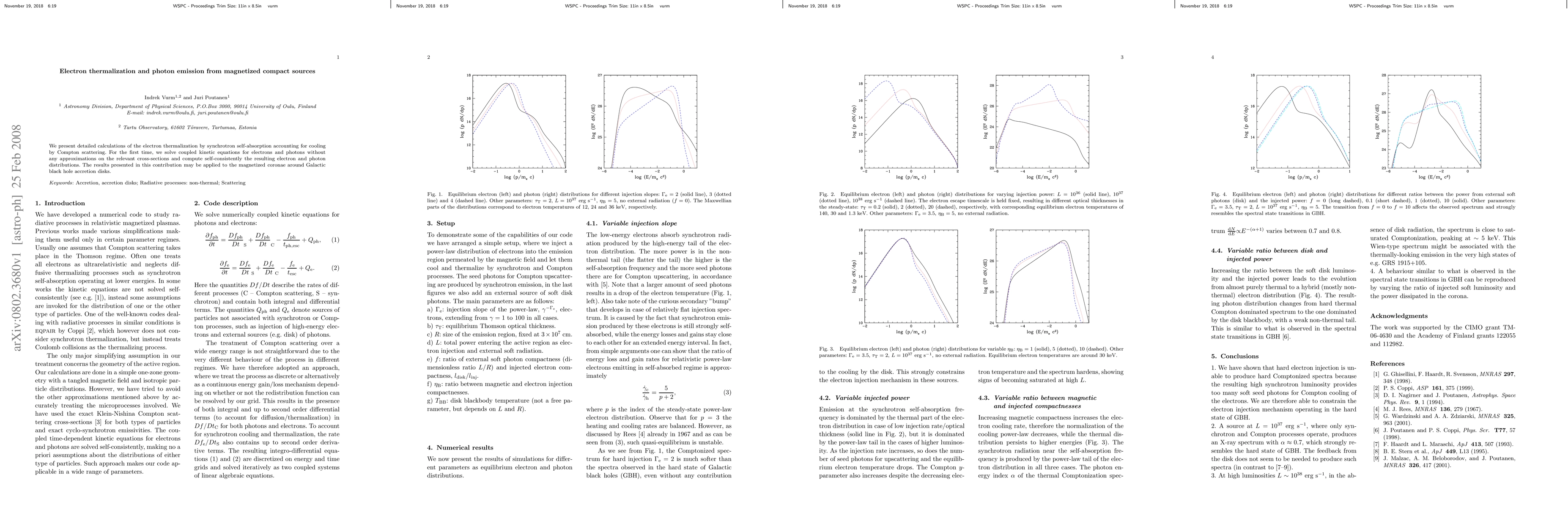 This paper presents detailed calculations of electron thermalization in magnetized compact sources, solving coupled kinetic equations for electrons and photons without approximations. The results can be applied to understand the dynamics of the magnetized coronae around Galactic black hole accretion disks.