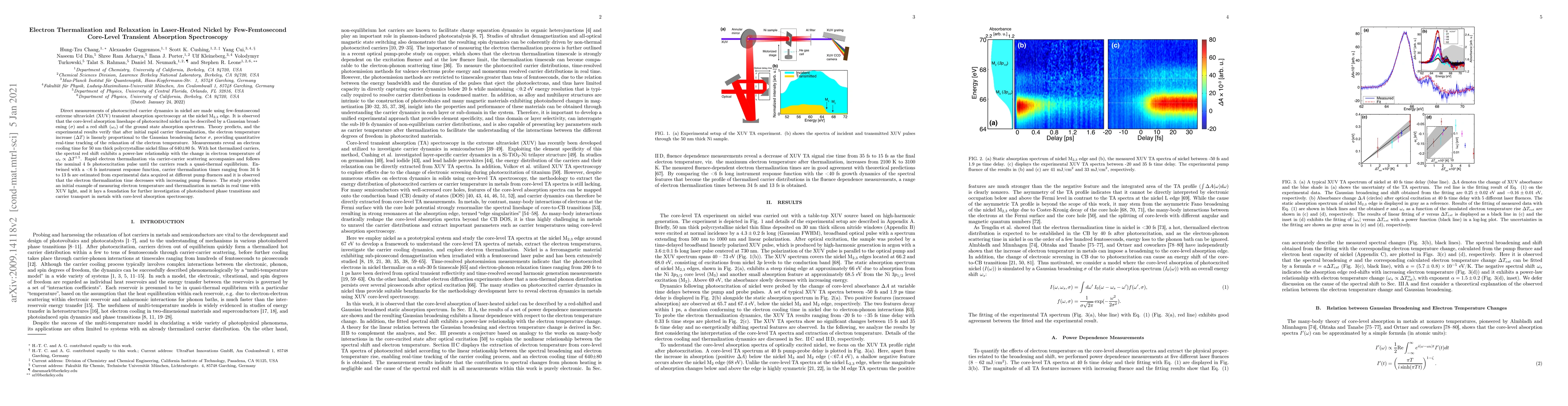This study employs few-femtosecond transient absorption spectroscopy to measure the rapid thermalization dynamics of photoexcited carriers in nickel, finding a linear correlation between electron temperature increase and Gaussian broadening. The electron cooling time is determined to be 640±80 fs, with thermalization times decreasing with higher pump fluence.