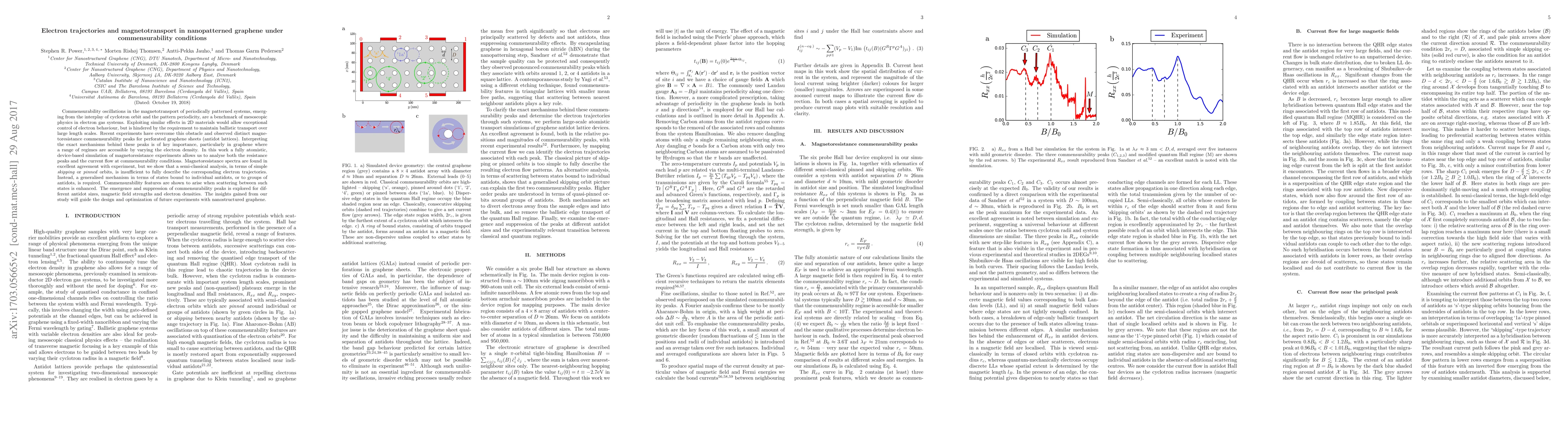 Commensurability oscillations in the magnetotransport of periodically patterned systems, emerging from the interplay of cyclotron orbit and the pattern periodicity, are a benchmark of mesoscopic physics in electron gas systems. Exploiting similar effects in 2D materials would allow exceptional control of electron behaviour, but is hindered by the requirement to maintain ballistic transport over large length scales. Recent experiments have overcome this obstacle and observed distinct magnetoresistance commensurability peaks for perforated graphene sheets (antidot lattices). Interpreting the exact mechanisms behind these peaks is of key importance, particularly in graphene where a range of regimes are accessible by varying the electron density. In this work a fully atomistic, device-based simulation of magnetoresistance experiments allows us to analyse both the resistance peaks and the current flow at commensurability conditions. Magnetoresistance spectra are found in excellent agreement with experiment, but we show that a semi-classical analysis, in terms of simple skipping or pinned orbits, is insufficient to fully describe the corresponding electron trajectories. Instead, a generalised mechanism in terms of states bound to individual antidots, or to groups of antidots, is required. Commensurability features are shown to arise when scattering between such states is enhanced. The emergence and suppression of commensurability peaks is explored for different antidot sizes, magnetic field strengths and electron densities. The insights gained from our study will guide the design and optimization of future experiments with nanostructured graphene.