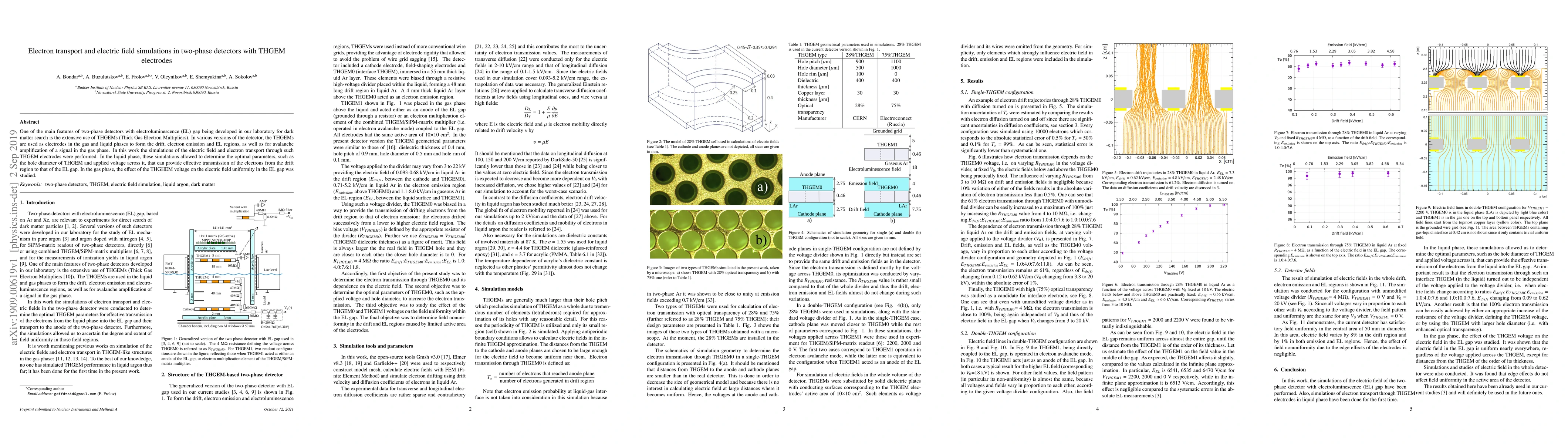 This paper presents simulations of electric field and electron transport in two-phase detectors utilizing THGEM electrodes, focusing on optimizing parameters for effective electron transmission in the liquid phase and studying the impact of THGEM voltage on electric field uniformity in the gas phase for dark matter detection.