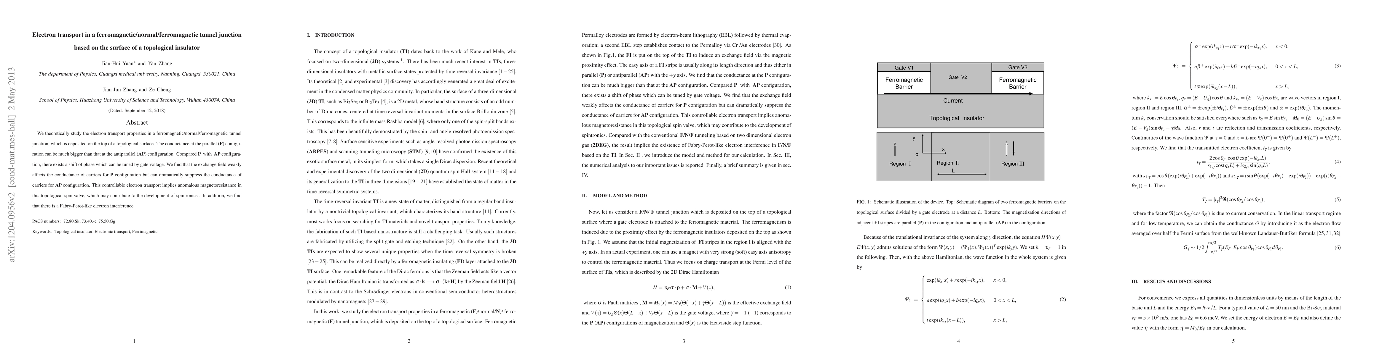 We theoretically study the electron transport properties in a ferromagnetic/normal/ferromagnetic tunnel junction, which is deposited on the top of a topological surface. The conductance at the parallel (\textbf{P}) configuration can be much bigger than that at the antiparallel (\textbf{AP}) configuration. Compared \textbf{P} with \textbf{AP} configuration, there exists a shift of phase which can be tuned by gate voltage. We find that the exchange field weakly affects the conductance of carriers for \textbf{P} configuration but can dramatically suppress the conductance of carriers for \textbf{AP} configuration. This controllable electron transport implies anomalous magnetoresistance in this topological spin valve, which may contribute to the development of spintronics . In addition, we find that there is a Fabry-Perot-like electron interference.