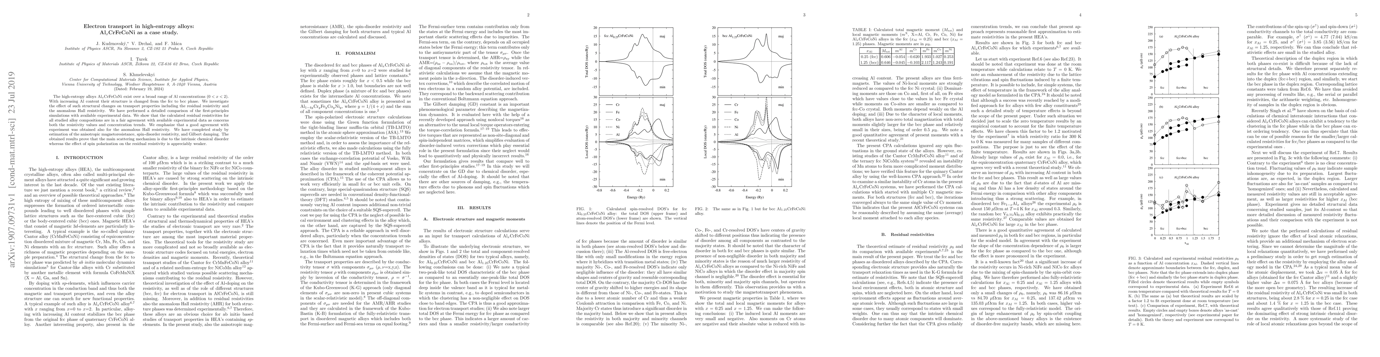 The high-entropy alloys Al$_{x}$CrFeCoNi exist over a broad range of Al concentrations ($0 < x < 2$). With increasing Al content their structure is changed from the fcc to bcc phase. We investigate the effect of such structural changes on transport properties including the residual resistivity and the anomalous Hall resistivity. We have performed a detailed comparison of the first-principles simulations with available experimental data. We show that the calculated residual resistivities for all studied alloy compositions are in a fair agreement with available experimental data as concerns both the resistivity values and concentration trends. We emphasize that a good agreement with experiment was obtained also for the anomalous Hall resistivity. We have completed study by estimation of the anisotropic magnetoresistance, spin-disorder resistivity, and Gilbert damping. The obtained results prove that the main scattering mechanism is due to the intrinsic chemical disorder whereas the effect of spin polarization on the residual resistivity is appreciably weaker.