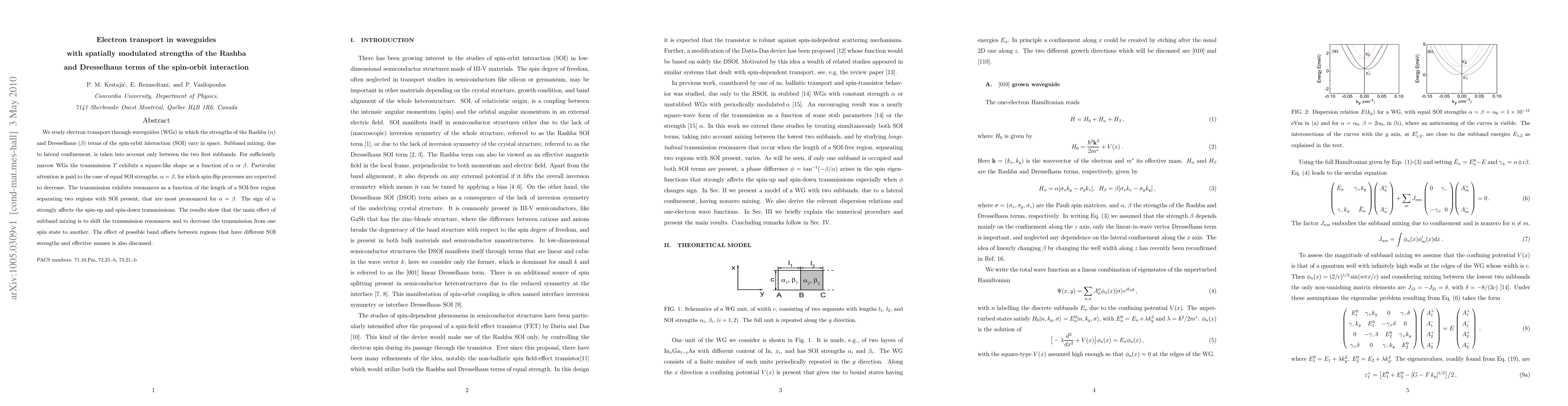 We study electron transport through waveguides (WGs) in which the strengths of the Rashba ($\alpha$) and Dresselhaus ($\beta$) terms of the spin-orbit interaction (SOI) vary in space. Subband mixing, due to lateral confinement, is taken into account only between the two first subbands. For sufficiently narrow WGs the transmission $T$ exhibits a square-like shape as a function of $\alpha$ or $\beta$. Particular attention is paid to the case of equal SOI strengths, $\alpha=\beta$, for which spin-flip processes are expected to decrease. The transmission exhibits resonances as a function of the length of a SOI-free region separating two regions with SOI present, that are most pronounced for $\alpha=\beta$. The sign of $\alpha$ strongly affects the spin-up and spin-down transmissions. The results show that the main effect of subband mixing is to shift the transmission resonances and to decrease the transmission from one spin state to another. The effect of possible band offsets between regions that have different SOI strengths and effective masses is also discussed.