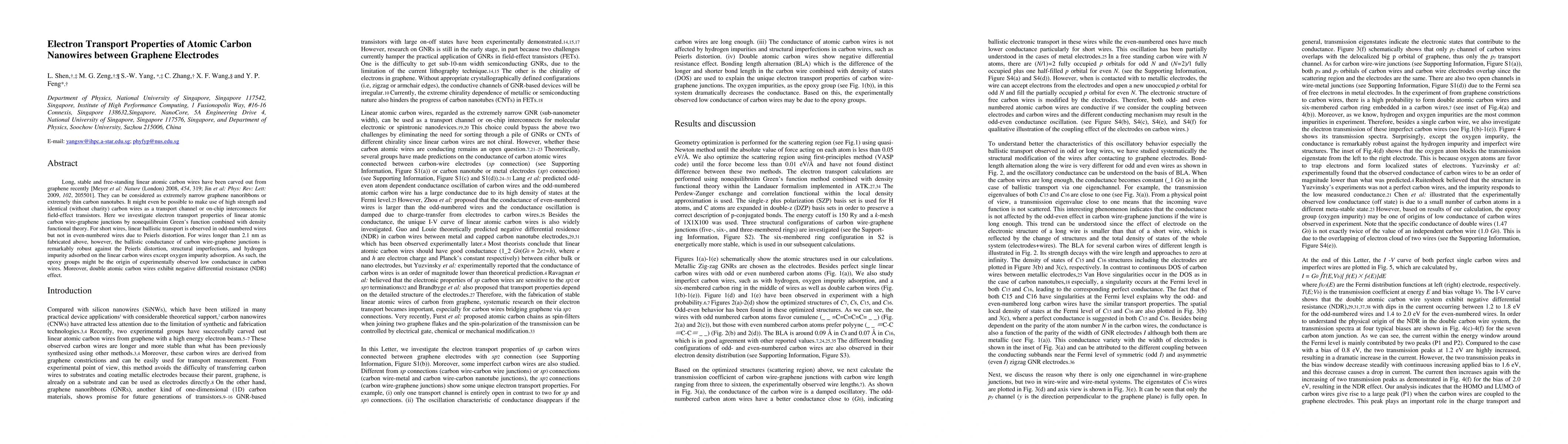 This paper investigates electron transport properties in atomic carbon nanowires between graphene electrodes, revealing linear ballistic transport in short odd-numbered wires and robust conductance in longer wires despite structural imperfections. Double atomic carbon wires show negative differential resistance.