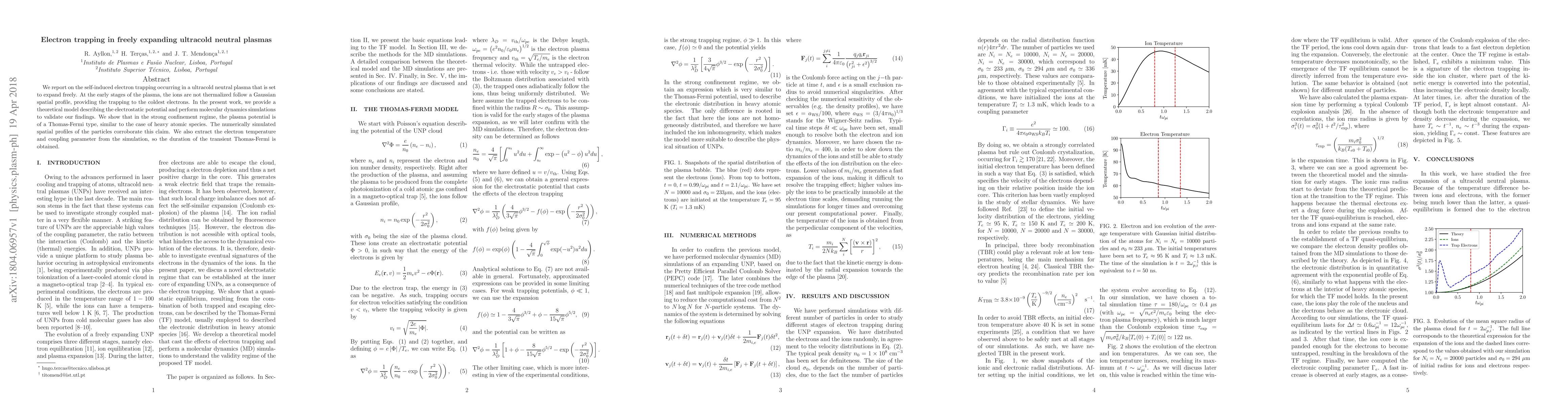 We report on the self-induced electron trapping occurring in a ultracold neutral plasma that is set to expand freely. At the early stages of the plasma, the ions are not thermalized follow a Gaussian spatial profile, providing the trapping to the coldest electrons. In the present work, we provide a theoretical model describing the electrostatic potential and perform molecular dynamics simulations to validate our findings. We show that in the strong confinement regime, the plasma potential is of a Thomas-Fermi type, similar to the case of heavy atomic species. The numerically simulated spatial profiles of the particles corroborate this claim. We also extract the electron temperature and coupling parameter from the simulation, so the duration of the transient Thomas-Fermi is obtained.