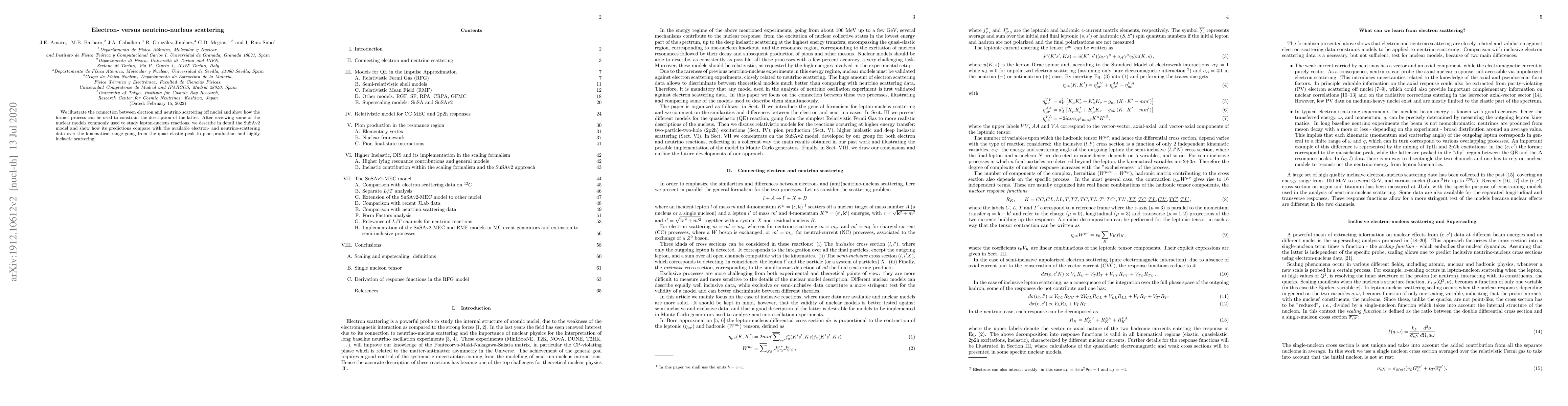 This paper explores the relationship between electron and neutrino scattering off nuclei, demonstrating how electron scattering data can constrain neutrino scattering models. It focuses on the SuSAv2 model and compares its predictions with both electron and neutrino scattering data, spanning from quasi-elastic interactions to pion production and highly inelastic scattering.