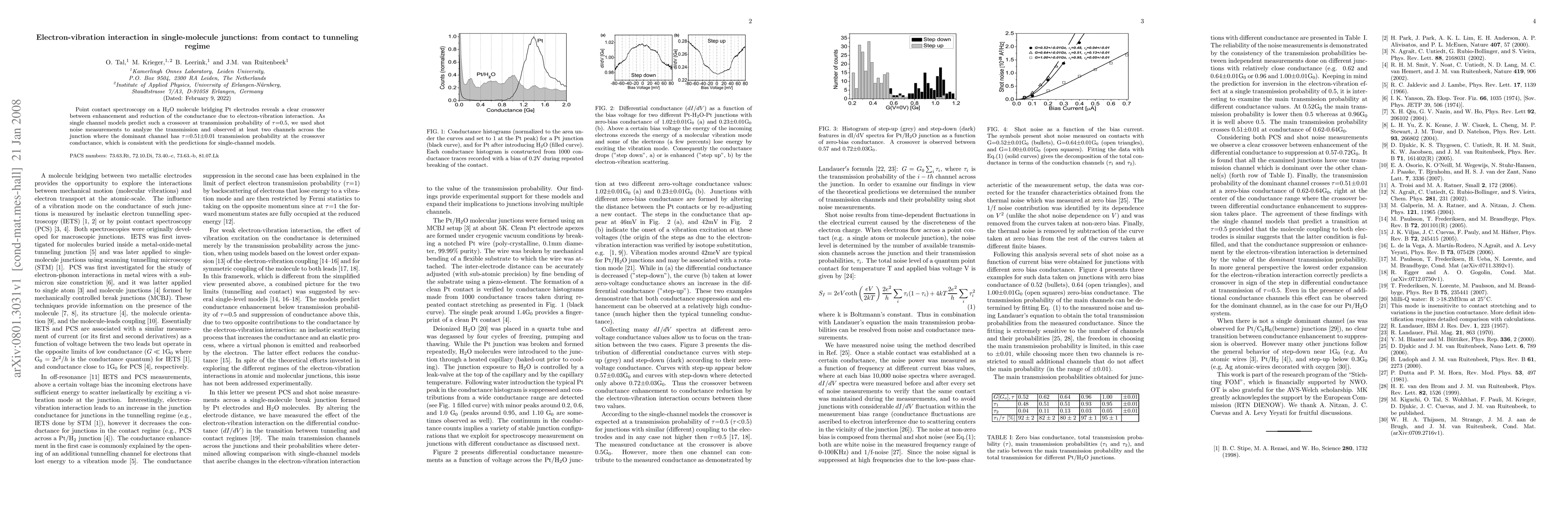 Researchers studied how vibrations in a molecule affect its conductivity when connected to two metal electrodes, finding a crossover point where the effect switches from increasing to decreasing conductivity.