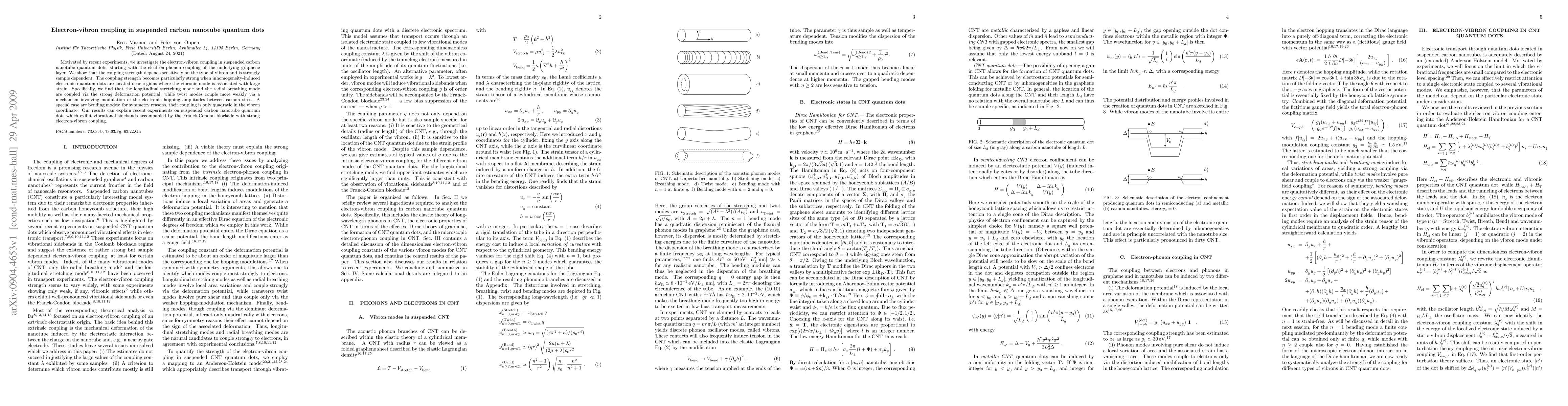 This study explores the electron-vibron coupling in suspended carbon nanotube quantum dots, revealing that coupling strength is highly dependent on the type of vibron and sample specifics. Notably, longitudinal and radial modes show strong coupling through deformation potentials, while twist modes and bending modes exhibit weaker and quadratic coupling respectively.
