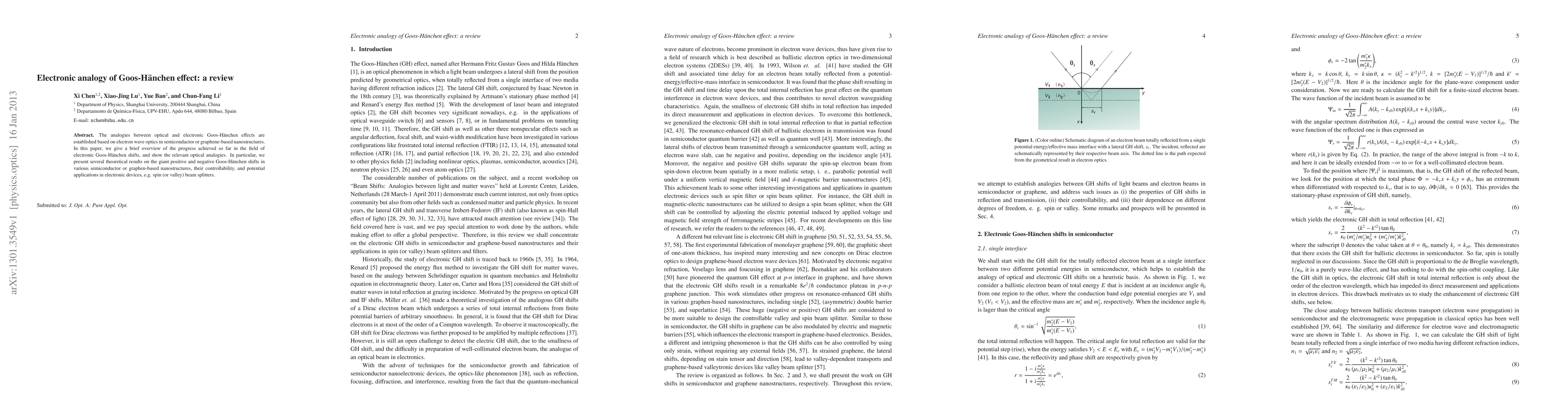 This paper reviews the electronic analogy of the Goos-Hänchen effect, focusing on electron wave optics in semiconductor and graphene nanostructures. It highlights theoretical results on giant positive and negative shifts, their controllability, and applications in spin or valley beam splitters for electronic devices.