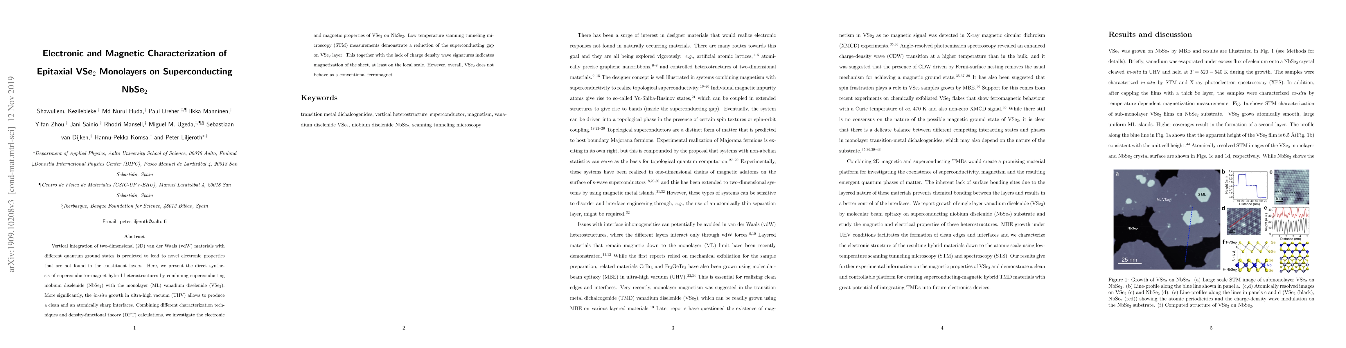 The paper explores the electronic and magnetic properties of epitaxial VSe$_2$ monolayers grown on superconducting NbSe$_2$, revealing reduced superconductivity and magnetic behavior in VSe$_2$ without conventional ferromagnetism. The study uses UHV growth, STM, and DFT to characterize the heterostructure.