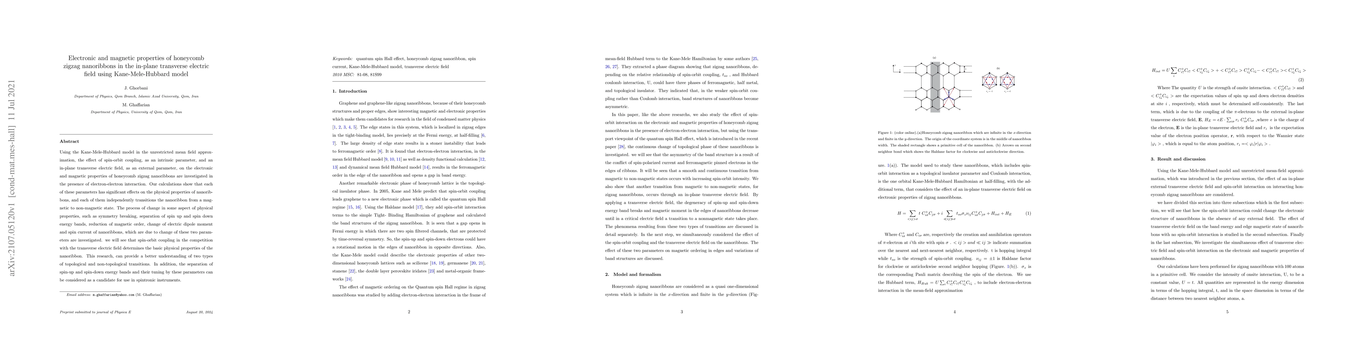 Using the Kane-Mele-Hubbard model in the unrestricted mean field approximation, the effect of spin-orbit coupling, as an intrinsic parameter, and an in-plane transverse electric field, as an external parameter, on the electronic and magnetic properties of honeycomb zigzag nanoribbons are investigated in the presence of electron-electron interaction. Our calculations show that each of these parameters has significant effects on the physical properties of nanoribbons, and each of them independently transitions the nanoribbon from a magnetic to non-magnetic state. The process of change in some aspect of physical properties, such as symmetry breaking, separation of spin up and spin down energy bands, reduction of magnetic order, change of electric dipole moment and spin current of nanoribbons, which are due to change of these two parameters are investigated. we will see that spin-orbit coupling in the competition with the transverse electric field determines the basic physical properties of the nanoribbon. This research, can provide a better understanding of two types of topological and non-topological transitions. In addition, the separation of spin-up and spin-down energy bands and their tuning by these parameters can be considered as a candidate for use in spintronic instruments.