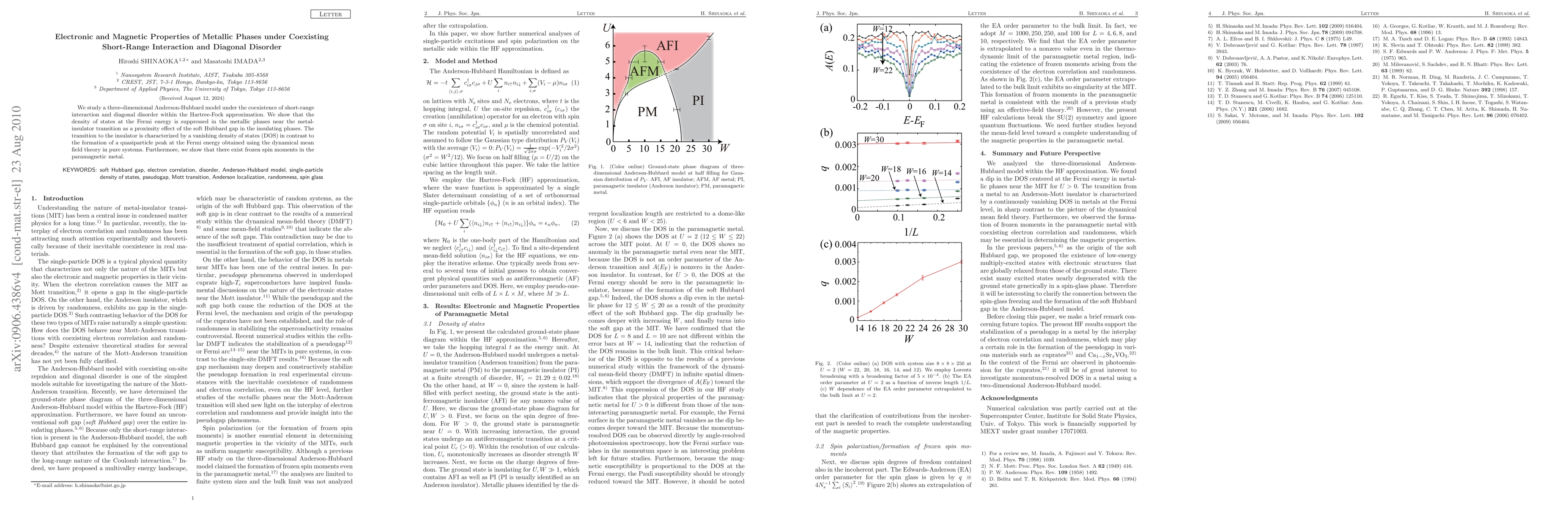 The study explores how short-range interaction and diagonal disorder affect metallic phases in a 3D Anderson-Hubbard model, finding that the metal-insulator transition is characterized by a vanishing density of states at the Fermi energy.