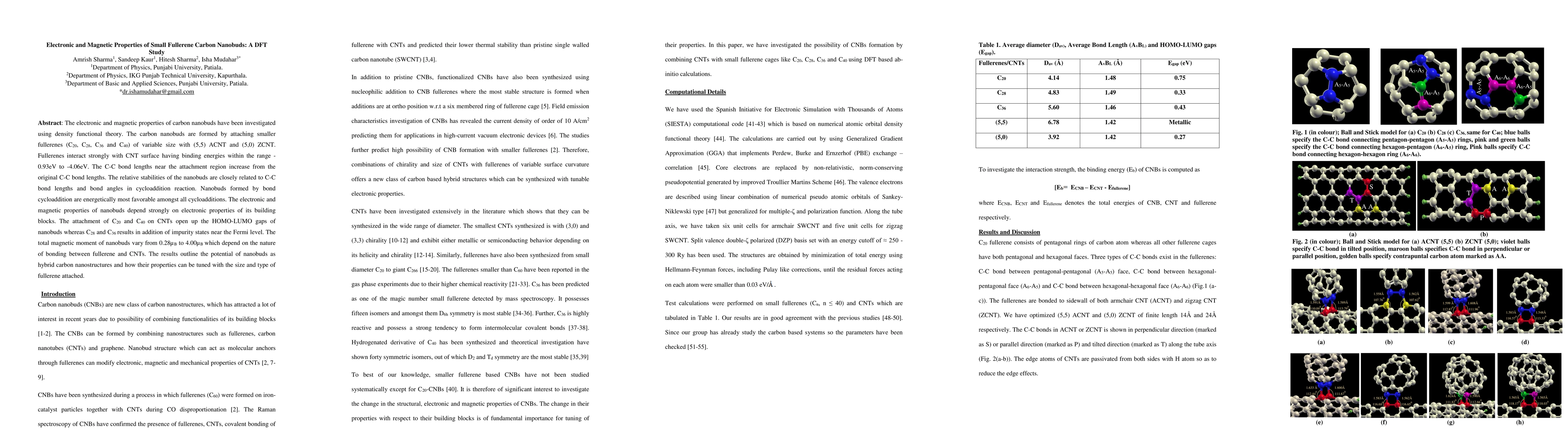 The electronic and magnetic properties of carbon nanobuds have been investigated using density functional theory. The carbon nanobuds are formed by attaching smaller fullerenes (C20, C28, C36 and C40) of variable size with (5,5) ACNT and (5,0) ZCNT. Fullerenes interact strongly with CNT surface having binding energies within the range -0.93eV to -4.06eV. The C-C bond lengths near the attachment region increase from the original C-C bond lengths. The relative stabilities of the nanobuds are closely related to C-C bond lengths and bond angles in cycloaddition reaction. Nanobuds formed by bond cycloaddition are energetically most favorable amongst all cycloadditions. The electronic and magnetic properties of nanobuds depend strongly on electronic properties of its building blocks. The attachment of C20 and C40 on CNTs open up the HOMO-LUMO gaps of nanobuds whereas C28 and C36 results in addition of impurity states near the Fermi level. The total magnetic moment of nanobuds vary from 0.28{\mu}B to 4.00{\mu}B which depend on the nature of bonding between fullerene and CNTs. The results outline the potential of nanobuds as hybrid carbon nanostructures and how their properties can be tuned with the size and type of fullerene attached.
