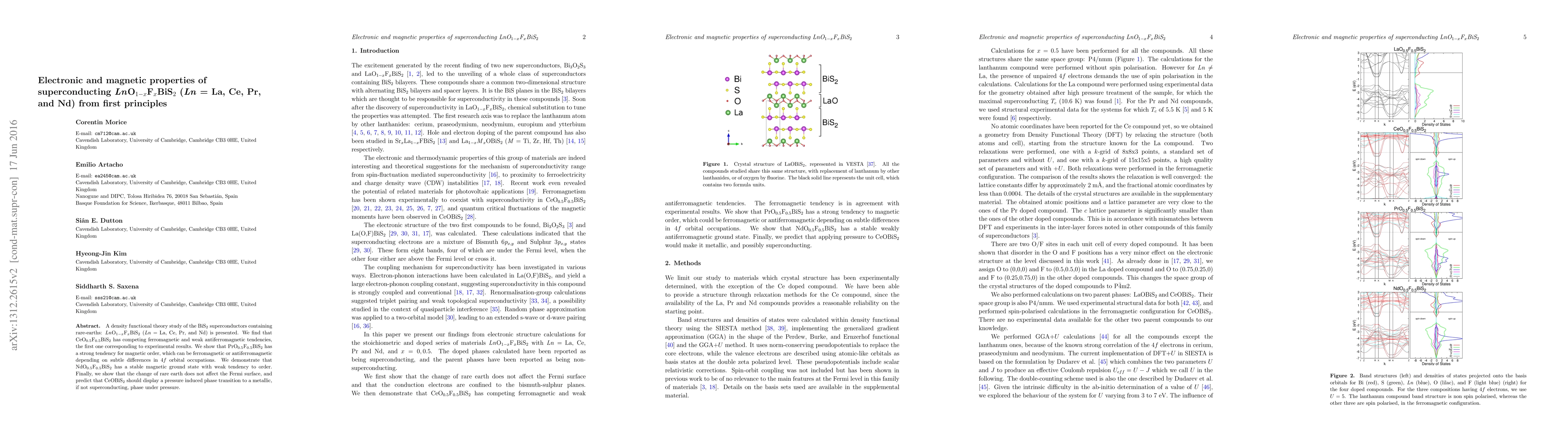 A density functional theory study of the BiS$_{2}$ superconductors containing rare-earths: \textit{Ln}O$_{1-x}$F$_{x}$BiS$_{2}$ (\textit{Ln} = La, Ce, Pr, and Nd) is presented. We find that CeO$_{0.5}$F$_{0.5}$BiS$_{2}$ has competing ferromagnetic and weak antiferromagnetic tendencies, the first one corresponding to experimental results. We show that PrO$_{0.5}$F$_{0.5}$BiS$_{2}$ has a strong tendency for magnetic order, which can be ferromagnetic or antiferromagnetic depending on subtle differences in 4$f$ orbital occupations. We demonstrate that NdO$_{0.5}$F$_{0.5}$BiS$_{2}$ has a stable magnetic ground state with weak tendency to order. Finally, we show that the change of rare earth does not affect the Fermi surface, and predict that CeOBiS$_{2}$ should display a pressure induced phase transition to a metallic, if not superconducting, phase under pressure.