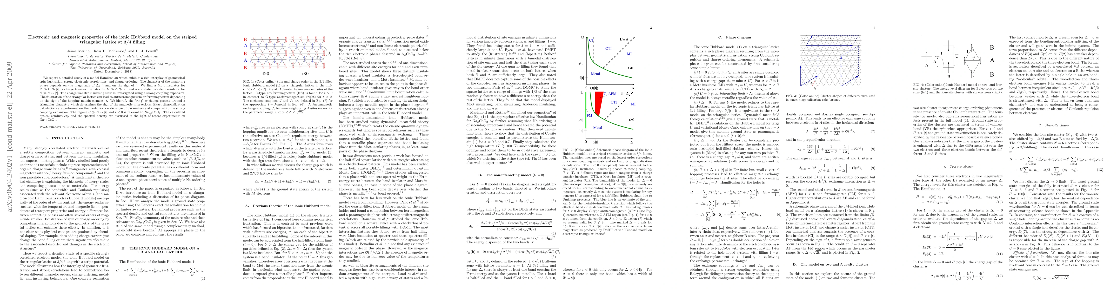 We report a detailed study of a model Hamiltonian which exhibits a rich interplay of geometrical spin frustration, strong electronic correlations, and charge ordering. The character of the insulating phase depends on the magnitude of Delta/|t| and on the sign of t. We find a Mott insulator for Delta >> U >> |t|; a charge transfer insulator for U >> \Delta >> |t|; and a correlated covalent insulator for U >> \Delta ~ |t|. The charge transfer insulating state is investigated using a strong coupling expansion. The frustration of the triangular lattice can lead to antiferromagnetism or ferromagnetism depending on the sign of the hopping matrix element, t. We identify the "ring" exchange process around a triangular plaquette which determines the sign of the magnetic interactions. Exact diagonalization calculations are performed on the model for a wide range of parameters and compared to the strong coupling expansion. The regime U >> \Delta ~ |t| and t<0 is relevant to Na05CoO2. The calculated optical conductivity and the spectral density are discussed in the light of recent experiments on Na05CoO2.