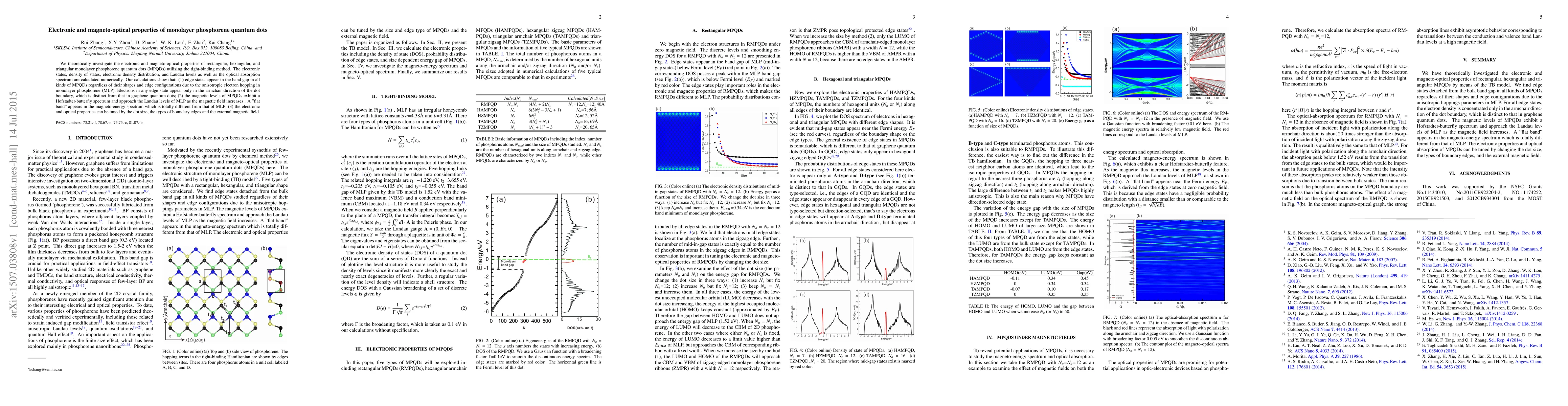This paper investigates the electronic and magneto-optical properties of various shapes of monolayer phosphorene quantum dots (MPQDs) using the tight-binding method. It finds that edge states emerge in the band gap due to anisotropic electron hopping, and the optical properties can be tuned by the dot size, edge types, and external magnetic field.