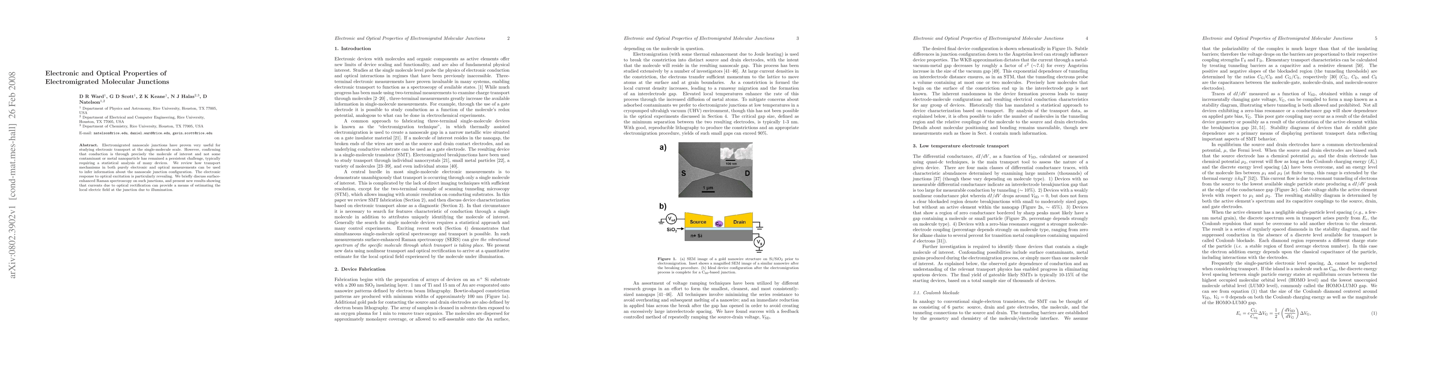 Electromigrated nanoscale junctions have proven very useful for studying electronic transport at the single-molecule scale. However, confirming that conduction is through precisely the molecule of interest and not some contaminant or metal nanoparticle has remained a persistent challenge, typically requiring a statistical analysis of many devices. We review how transport mechanisms in both purely electronic and optical measurements can be used to infer information about the nanoscale junction configuration. The electronic response to optical excitation is particularly revealing. We briefly discuss surface-enhanced Raman spectroscopy on such junctions, and present new results showing that currents due to optical rectification can provide a means of estimating the local electric field at the junction due to illumination.