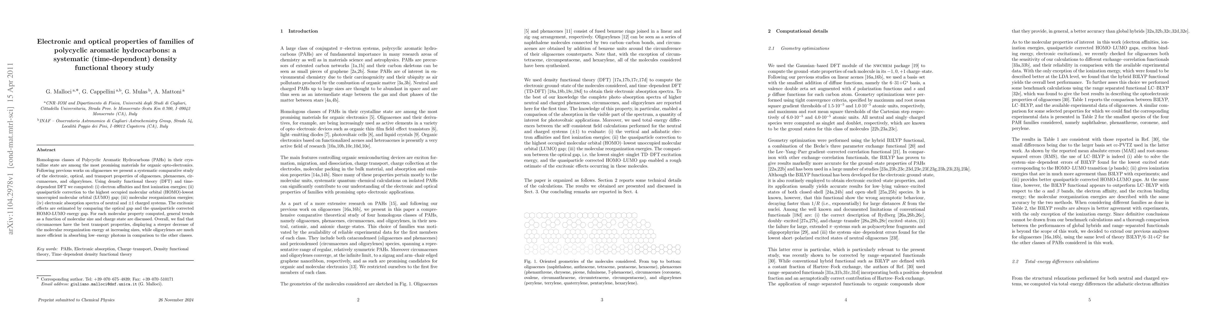 This study systematically compares the electronic and optical properties of various polycyclic aromatic hydrocarbons (PAHs) using density functional theory (DFT). The research finds that circumacenes exhibit superior transport properties, while oligorylenes are more efficient at absorbing low-energy photons, highlighting their potential in organic opto-electronics.
