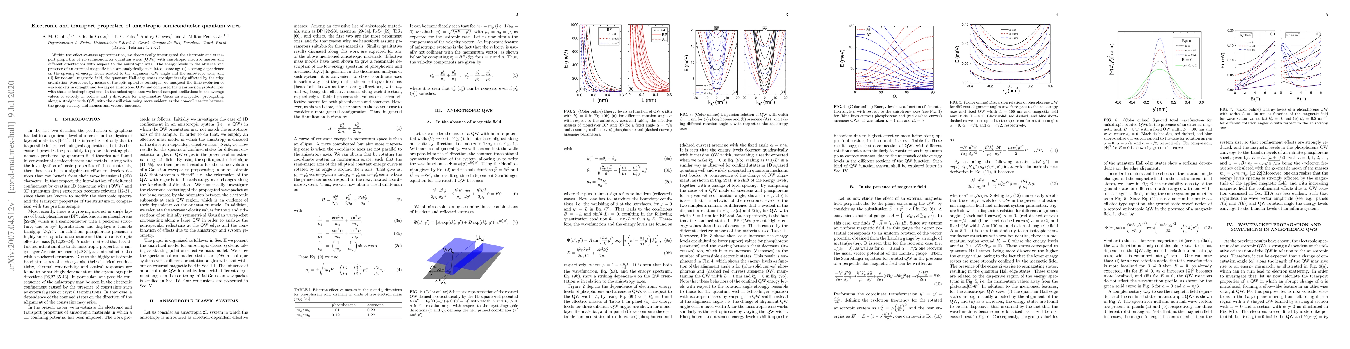 This research investigates the electronic and transport properties of 2D anisotropic semiconductor quantum wires, showing strong dependence of energy levels on wire orientation and significant effects of magnetic fields on quantum Hall edge states. The study also finds damped oscillations in velocity for anisotropic wires, contrasting with isotropic systems.