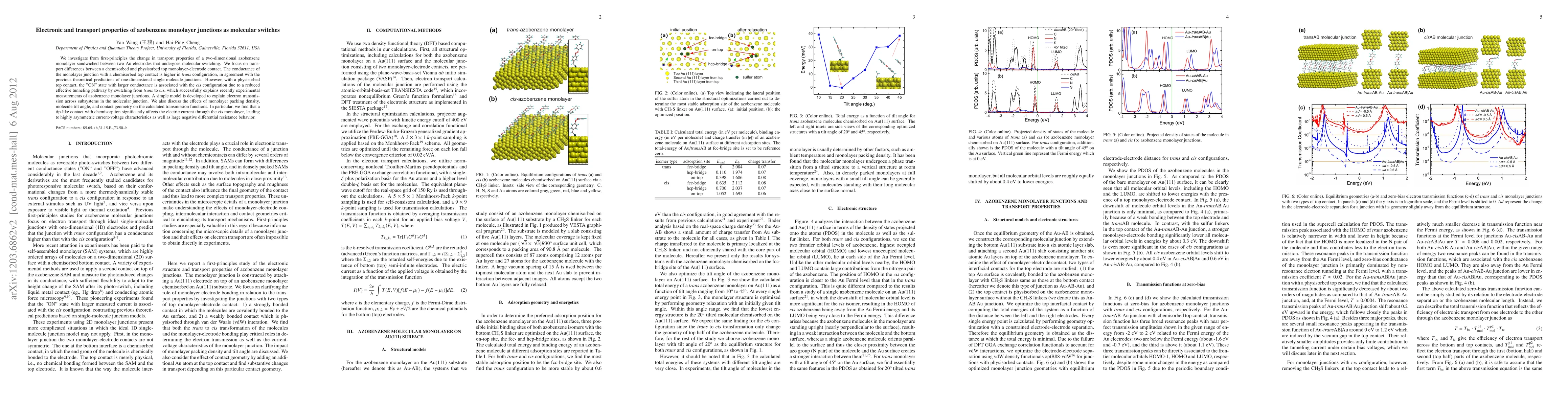 This study uses first-principles calculations to explore the electronic and transport properties of azobenzene monolayer junctions, revealing that chemisorbed contacts yield higher conductance in trans configuration, while physisorbed contacts exhibit higher conductance in cis configuration due to reduced tunneling pathways. The findings explain recent experimental measurements and highlight the influence of contact geometry on current-voltage characteristics.