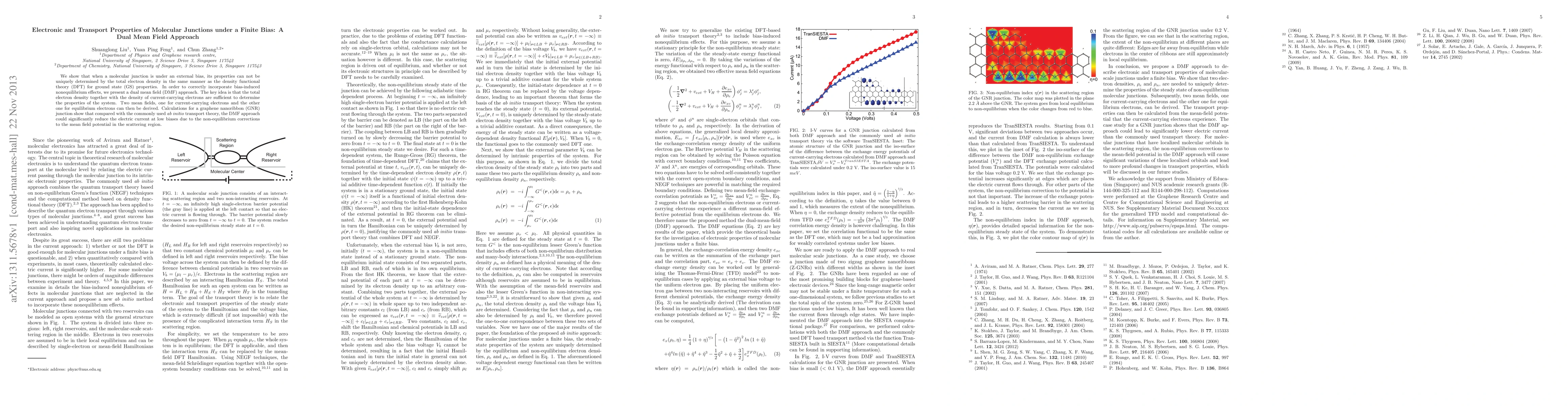 This paper introduces a dual mean field approach to study the electronic and transport properties of molecular junctions under finite bias, showing that total electron density alone is insufficient. The proposed method incorporates both current-carrying and equilibrium electron densities, leading to more accurate predictions of non-equilibrium effects compared to traditional \textit{ab initio} transport theory.