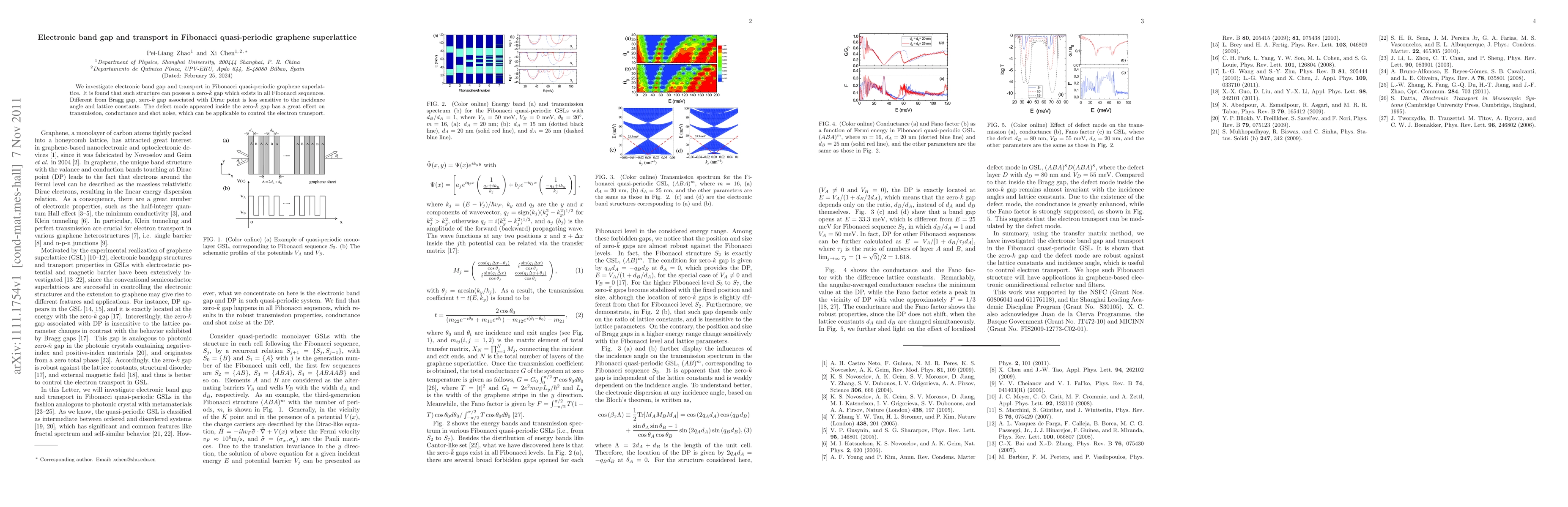 This study explores the electronic band gap and transport properties in Fibonacci quasi-periodic graphene superlattices, revealing a zero-$\bar{k}$ gap that is robust across different Fibonacci sequences and less sensitive to angle and lattice variations. The defect mode within this gap significantly influences transmission, conductance, and shot noise, offering potential for controlling electron transport.