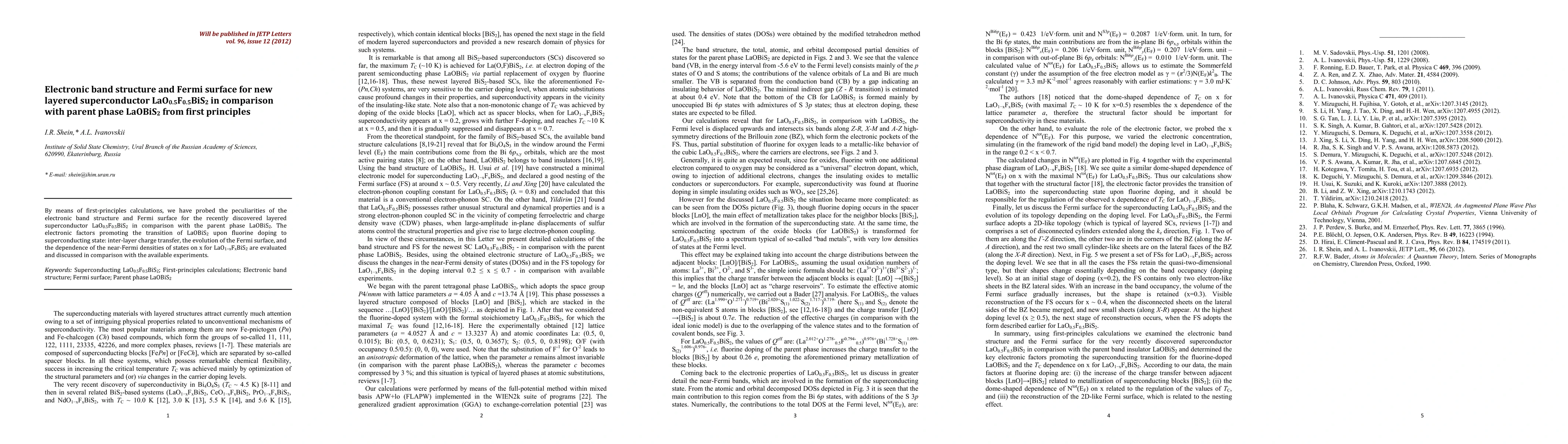 By means of first-principles calculations? we have probed the peculiarities of the elecrtonic band structure and Fermi surface for the recently discovered layered superconductor LaO0.5F0.5BiSi2 in comparison with the parent phase LaOBiO2. The electronic factors prpmoting the transition of LaOBiS2 upon fluorine doping to superconducting state: inter-layer charge transfer, the evolution of the Fermi surface, and the dependence of the near-Fermi densities of states on x for LaO1-xFxBiS2 are evaluated and discussed in comparison with the available experiments.