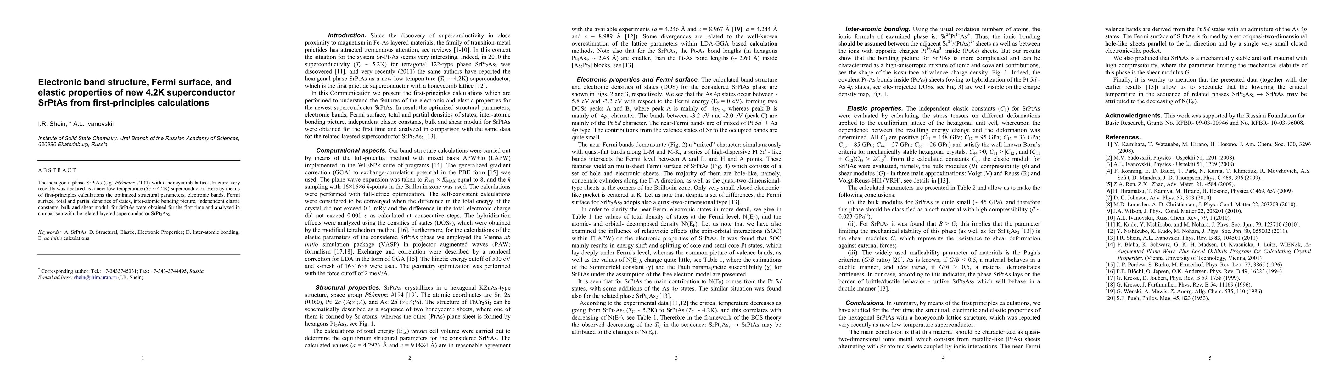This study uses first-principles calculations to determine the electronic band structure, Fermi surface, and elastic properties of the newly discovered low-temperature superconductor SrPtAs, optimizing its structural parameters and comparing its properties with those of SrPt2As2. The findings provide insights into the material's superconducting behavior and bonding characteristics.