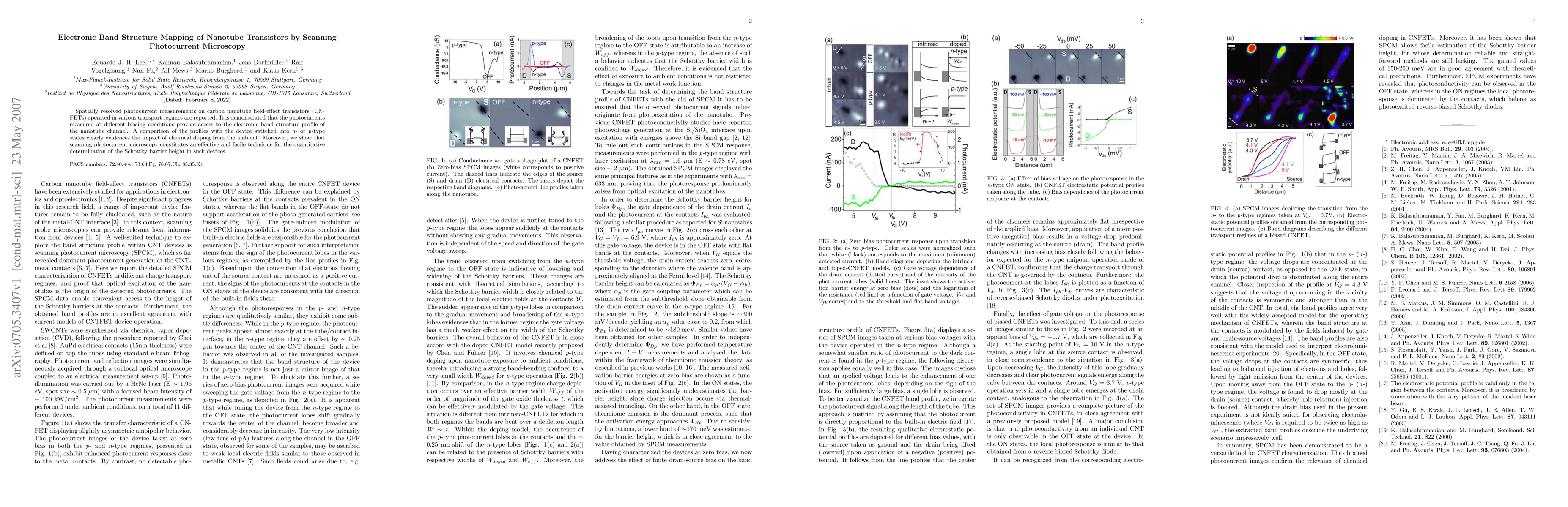 This study uses scanning photocurrent microscopy to spatially resolve electronic band structures in carbon nanotube field-effect transistors, revealing the impact of ambient chemical doping on device behavior and providing an effective method for determining Schottky barrier heights.