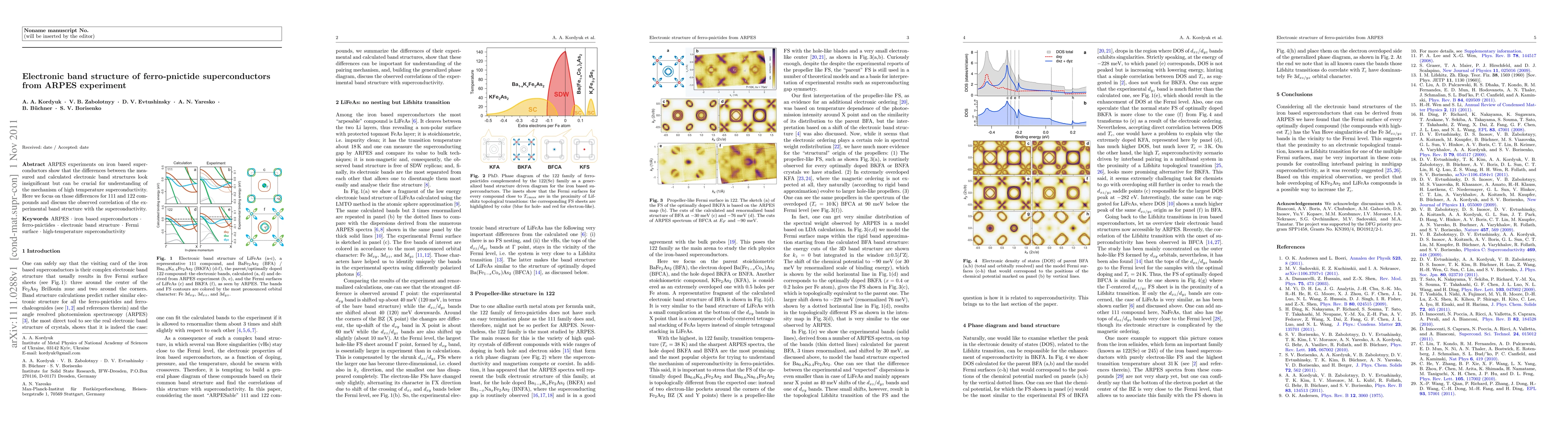 Summary: This study uses ARPES experiments to analyze the electronic band structure of ferro-pnictide superconductors, revealing subtle but significant discrepancies between measured and calculated structures that are vital for understanding the high-temperature superconductivity mechanism, particularly in 111 and 122 compounds.