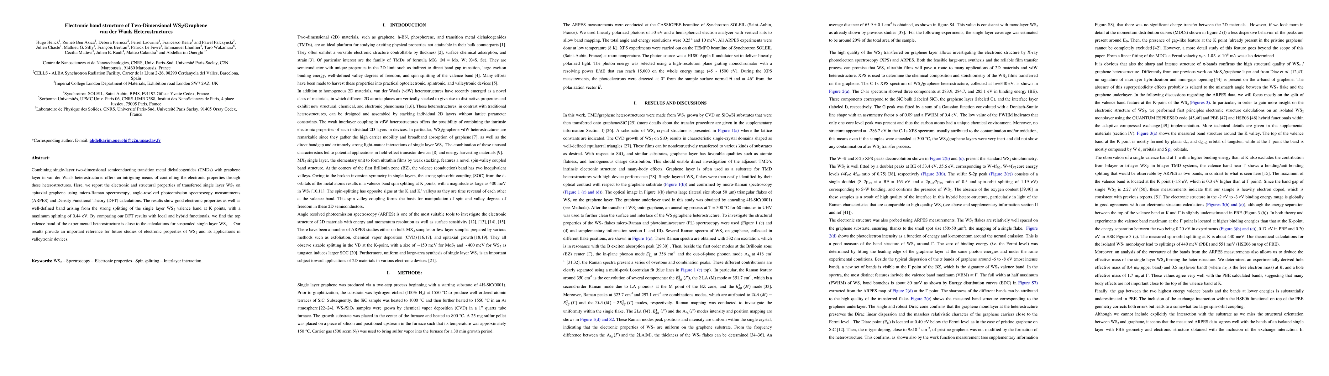 This paper investigates the electronic band structure of WS2/graphene van der Waals heterostructures using micro-Raman spectroscopy, ARPES, and DFT. The study reveals strong splitting of WS2's valence band, with a maximum of 0.44 eV, indicating promising electronic properties for potential applications in valleytronic devices.