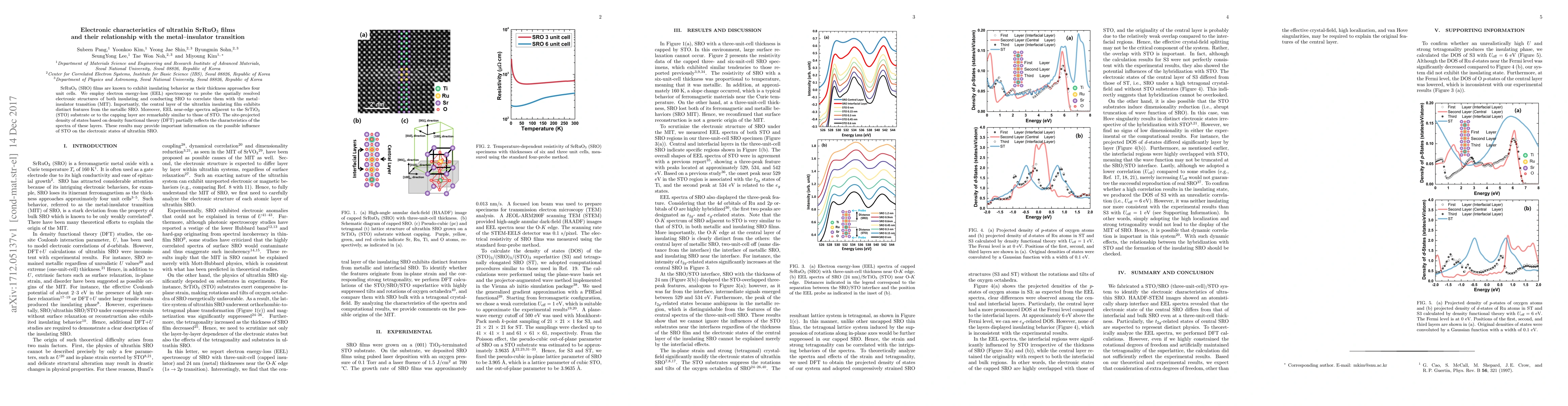 This paper investigates the electronic characteristics of ultrathin SrRuO$_3$ films using electron energy-loss spectroscopy, revealing distinct features in the insulating central layer compared to conducting layers and similarities to SrTiO$_3$ substrate, suggesting significant influence of the substrate on the electronic states.