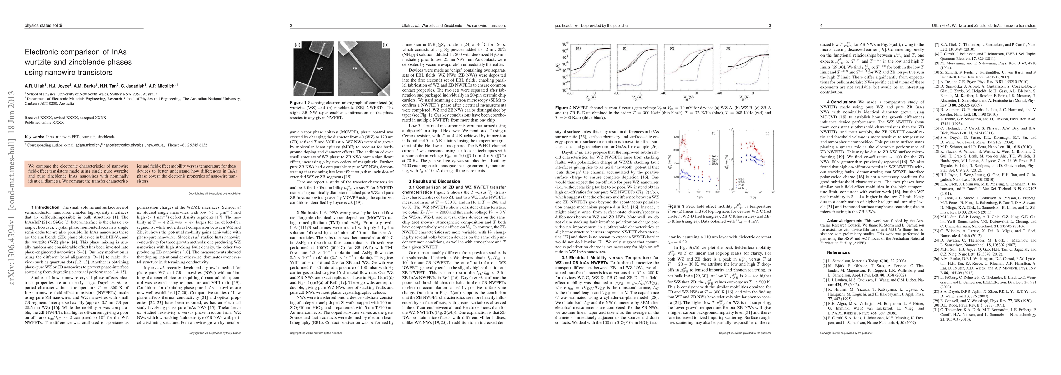 This study compares the electronic properties of InAs nanowire transistors fabricated from wurtzite and zincblende phases, focusing on transfer characteristics and temperature-dependent field-effect mobility to elucidate the influence of phase differences on device performance.