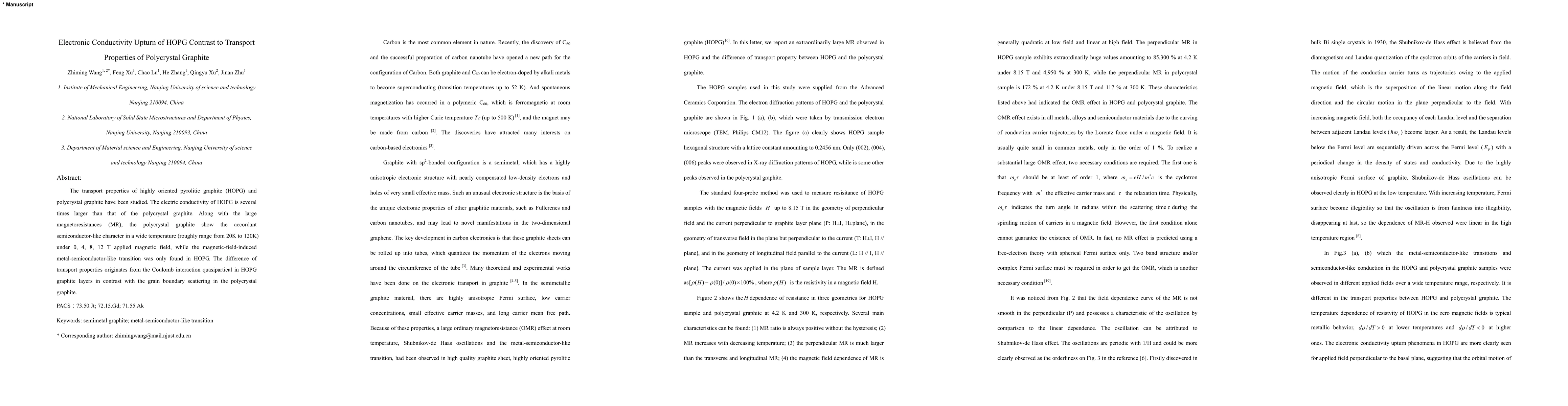 This study reveals that highly oriented pyrolitic graphite (HOPG) exhibits significantly higher electronic conductivity compared to polycrystal graphite, with HOPG also undergoing a magnetic-field-induced metal-semiconductor transition. In contrast, polycrystal graphite displays semiconductor-like behavior and grain boundary scattering effects.