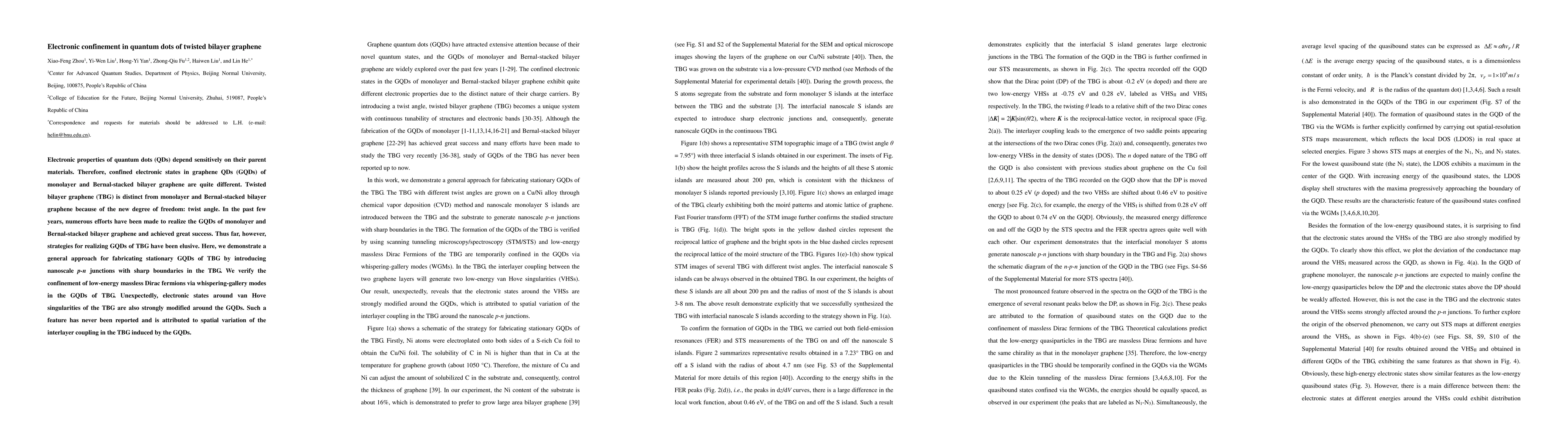 This research demonstrates a novel method for creating stationary quantum dots in twisted bilayer graphene using nanoscale p-n junctions, verifying the confinement of electronic states and revealing unexpected modifications to electronic states around van Hove singularities due to spatial variation in interlayer coupling.