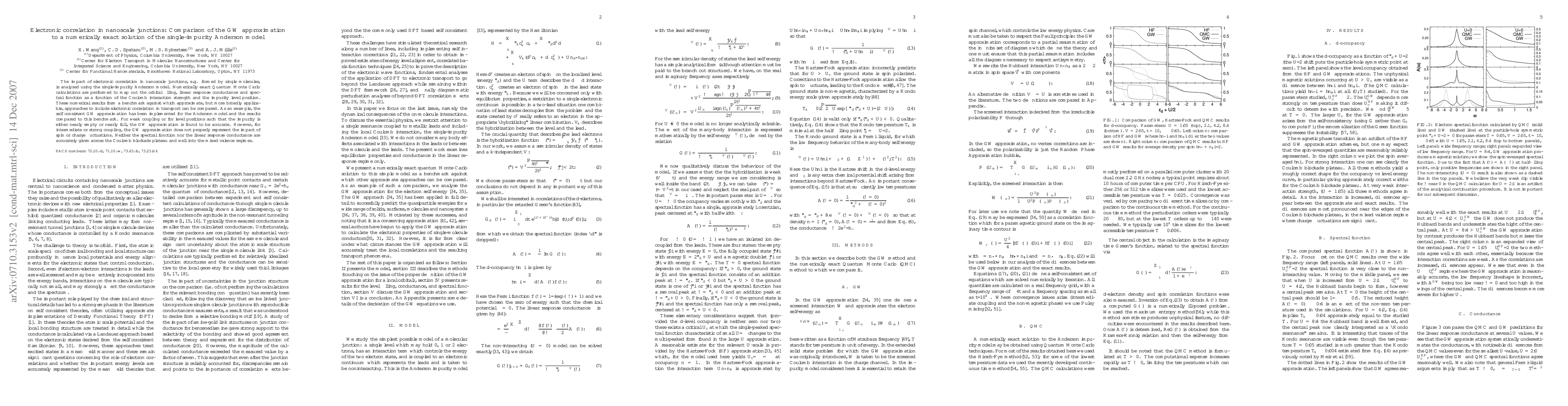 The impact of electronic correlation in nanoscale junctions, e.g. formed by single molecules, is analyzed using the single-impurity Anderson model. Numerically exact Quantum Monte Carlo calculations are performed to map out the orbital filling, linear response conductance and spectral function as a function of the Coulomb interaction strength and the impurity level position. These numerical results form a benchmark against which approximate, but more broadly applicable, approaches to include electronic correlation in transport can be compared. As an example, the self consistent GW approximation has been implemented for the Anderson model and the results compared to this benchmark. For weak coupling or for level positions such that the impurity is either nearly empty or nearly full, the GW approximation is found to be accurate. However, for intermediate or strong coupling, the GW approximation does not properly represent the impact of spin or charge fluctuations. Neither the spectral function nor the linear response conductance are accurately given across the Coulomb blockade plateau and well into the mixed valence regimes.