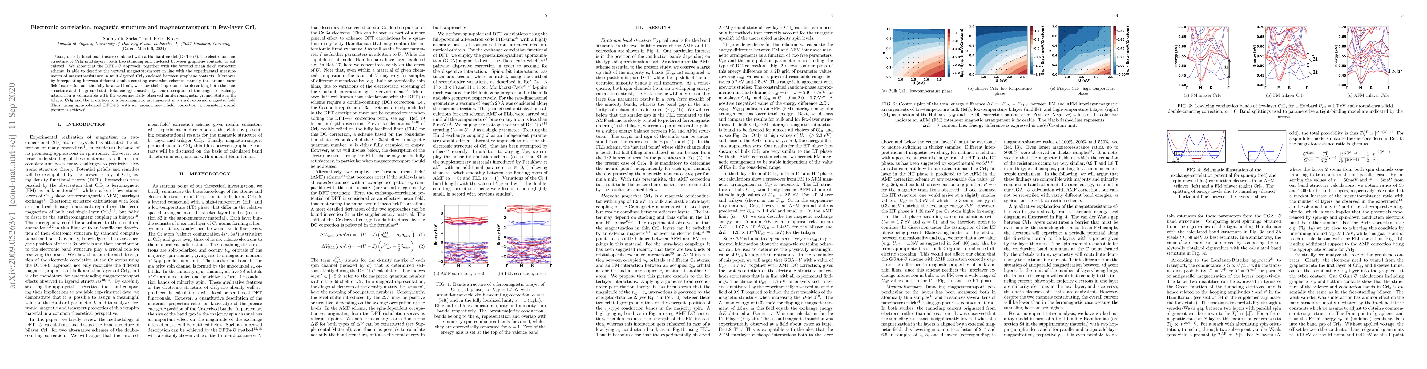 This paper uses DFT+U combined with 'around mean field' correction to describe the electronic structure and magnetotransport in few-layer CrI3, showing agreement with experimental magnetoresistance measurements and predicting the magnetic phase transitions observed in bilayer CrI3.